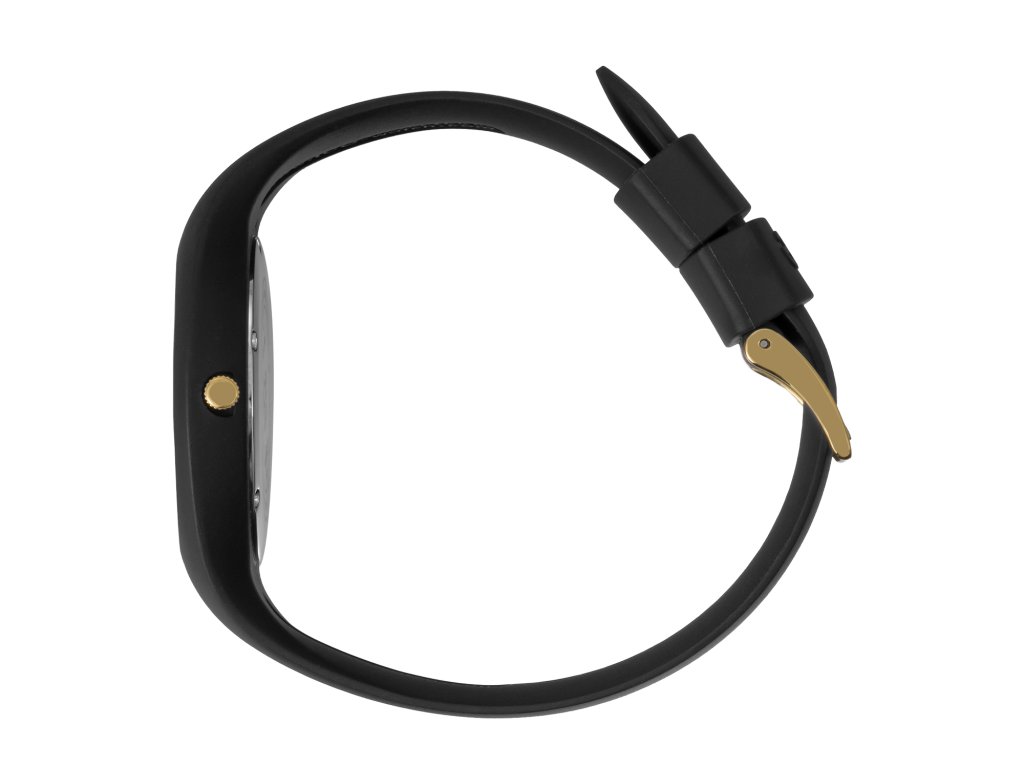 Dámské elegantní hodinky se zlatým číselníkem s aplikací květiny, pouzdro i řemínek je z černého silikonu, spona i korunka jsou v barvě číselníku.Doplňkové parametry