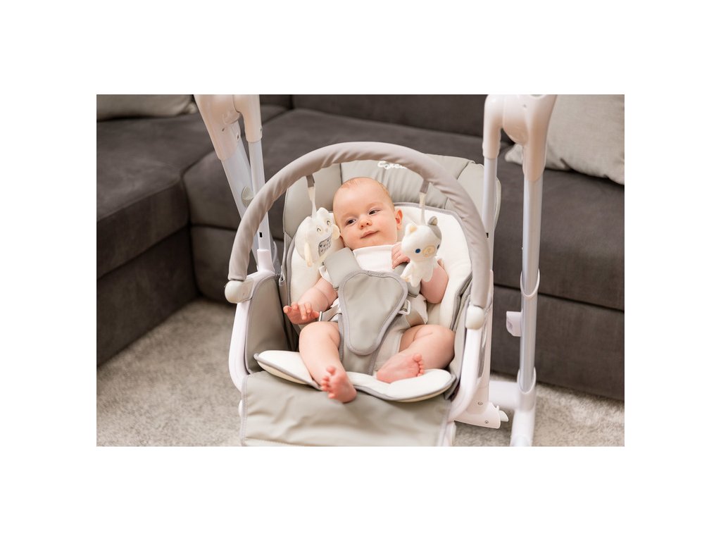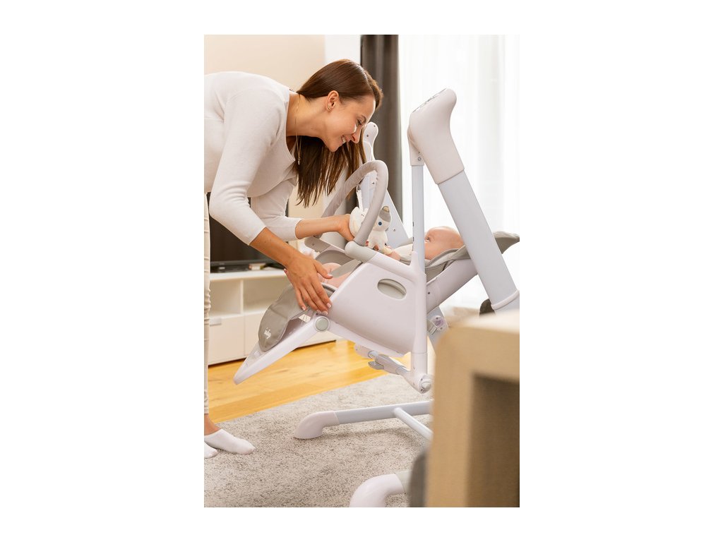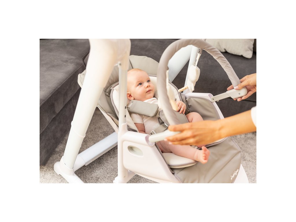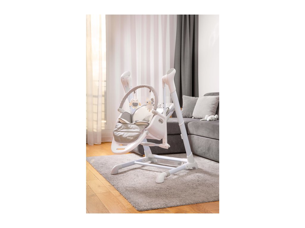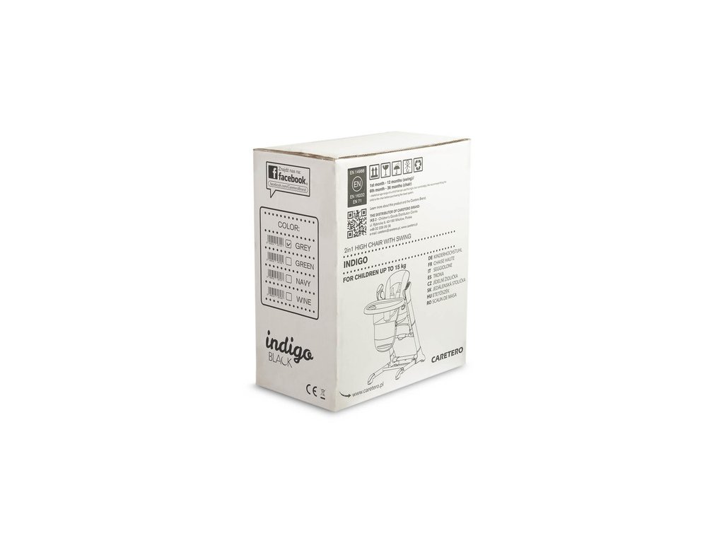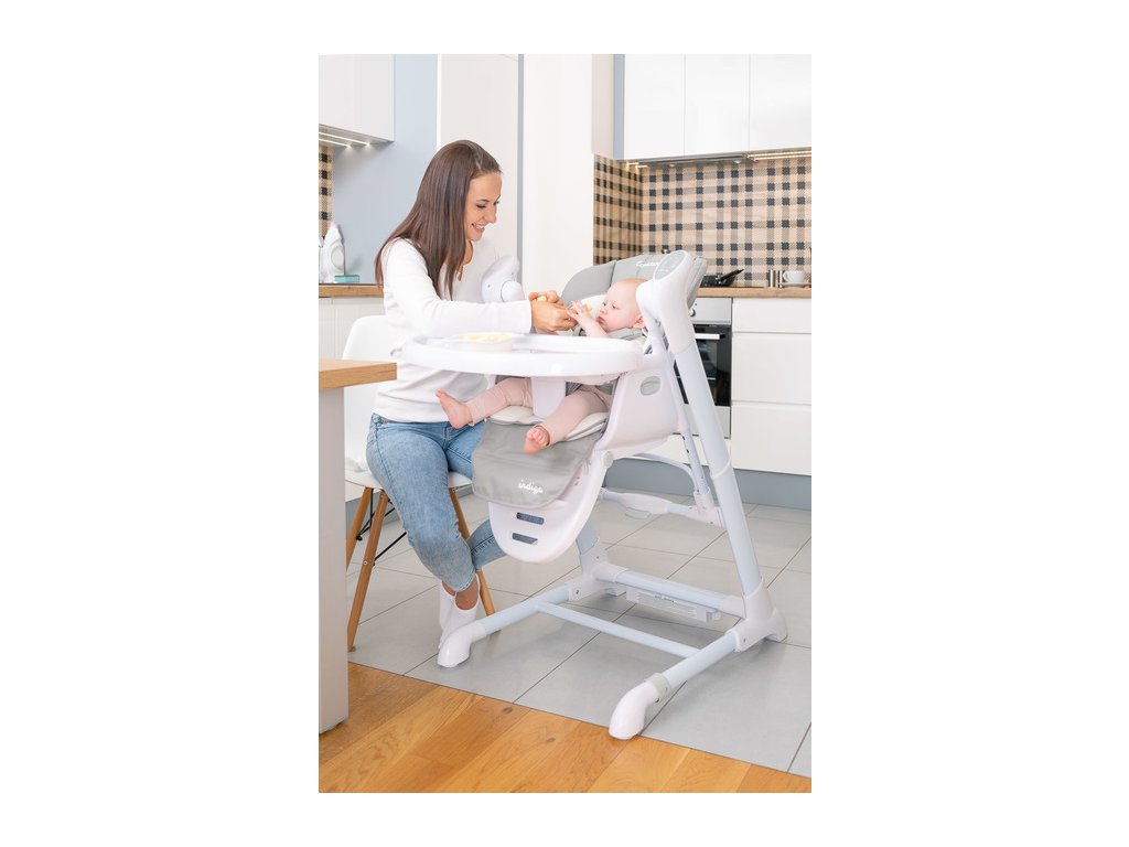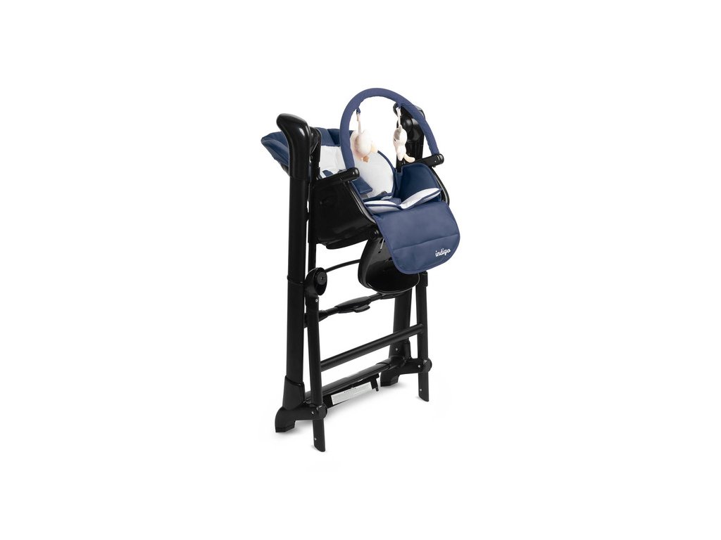 Indigo – jídelní židlička a houpačka 2v1 pro vaše miminko. Indigo je elegantní a funkční řešení 2v1 – slouží jako jídelní židlička i dětská houpačka. Designově propracovaný doplněk každého interiéru, který nabízí maximální pohodlí a bezpečnost při jídle i odpočinku. Hlavní výhody produktu Indigo: 2v1: jídelní židlička a dětská houpačka. Houpačka vhodná pro děti od narození do 9 kg. Jídelní židlička pro děti od 6 měsíců do cca 3–4 let (do 15 kg). Snadno omyvatelný potah z PVC, odolný vůči skvrnám. 4 polohy zádové opěrky – komfort při jídle i relaxaci. 6 výškových poloh židličky a 5 poloh podnožky. Měkká bavlněná vložka pro menší děti. Jednoduché skládání a úspora místa. Stabilní konstrukce a protiskluzové nožky. Velká, dvojitá odnímatelná jídelní tác. Centrální ovládací panel – buzení na baterie nebo adaptér. Nastavitelná rychlost houpání a časovač (8, 15, 30 min). Odnímatelný oblouk s plyšovými hračkami. Splňuje normy EN 14988, EN 16232, EN 71. Indigo je ideální volbou pro moderní rodiny hledající styl, praktičnost a bezpečí v jednom produktu.Doplňkové parametry