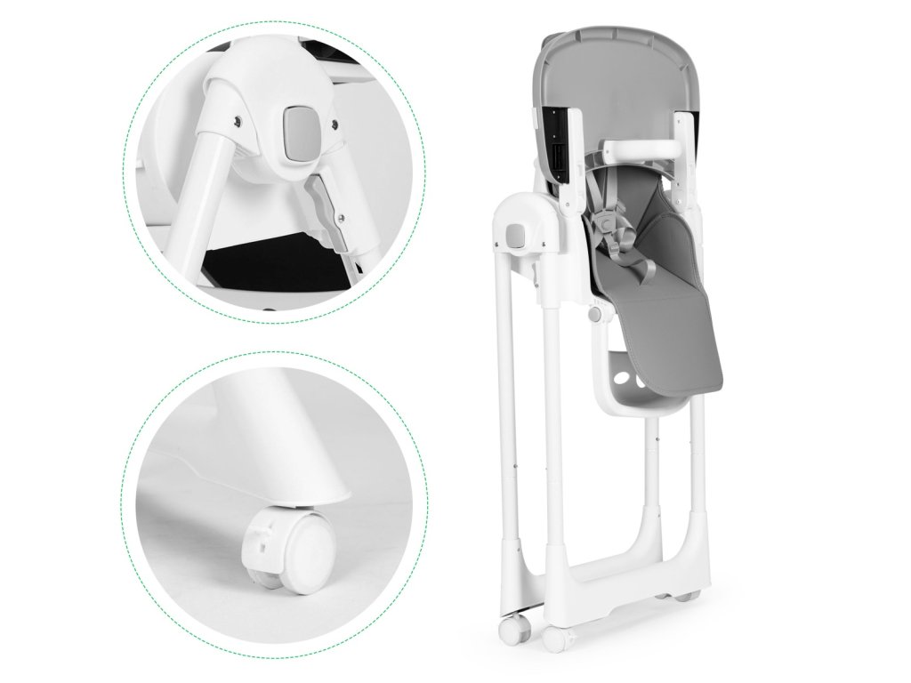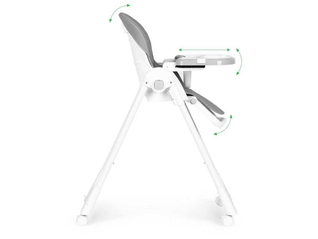 Jídelní židlička s nastavitelnou výškou, ekokůže, táckem, šedá