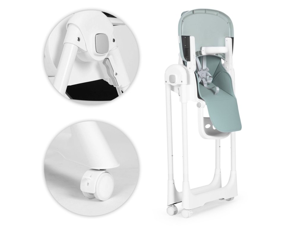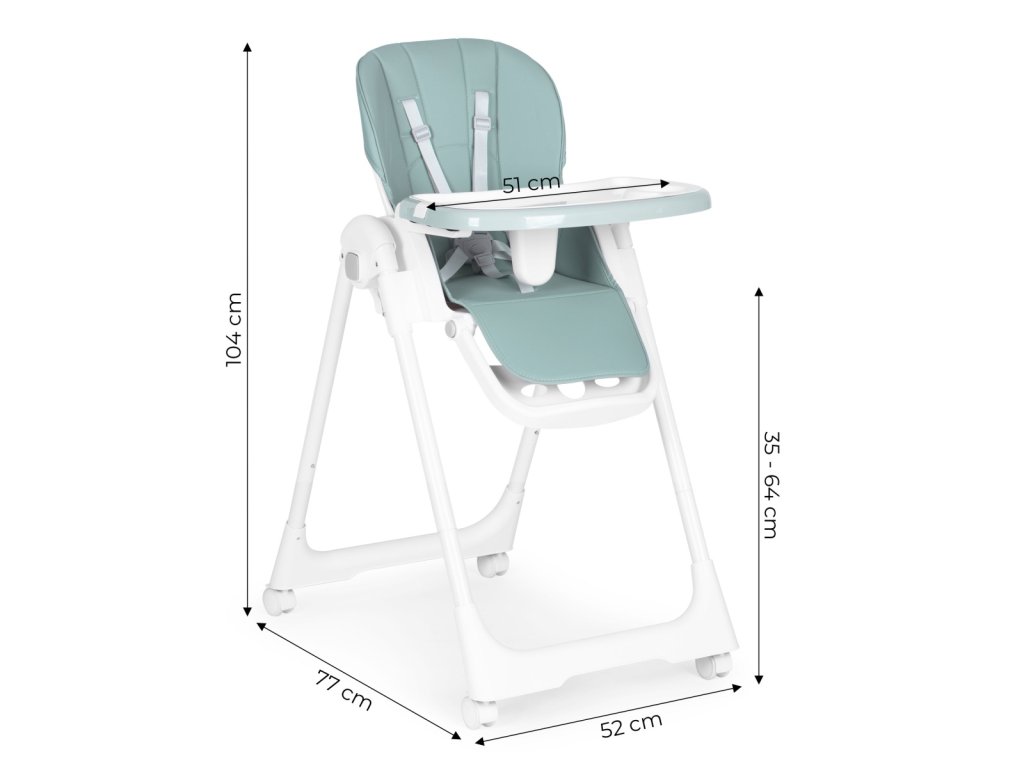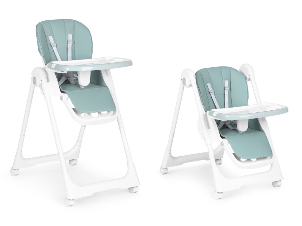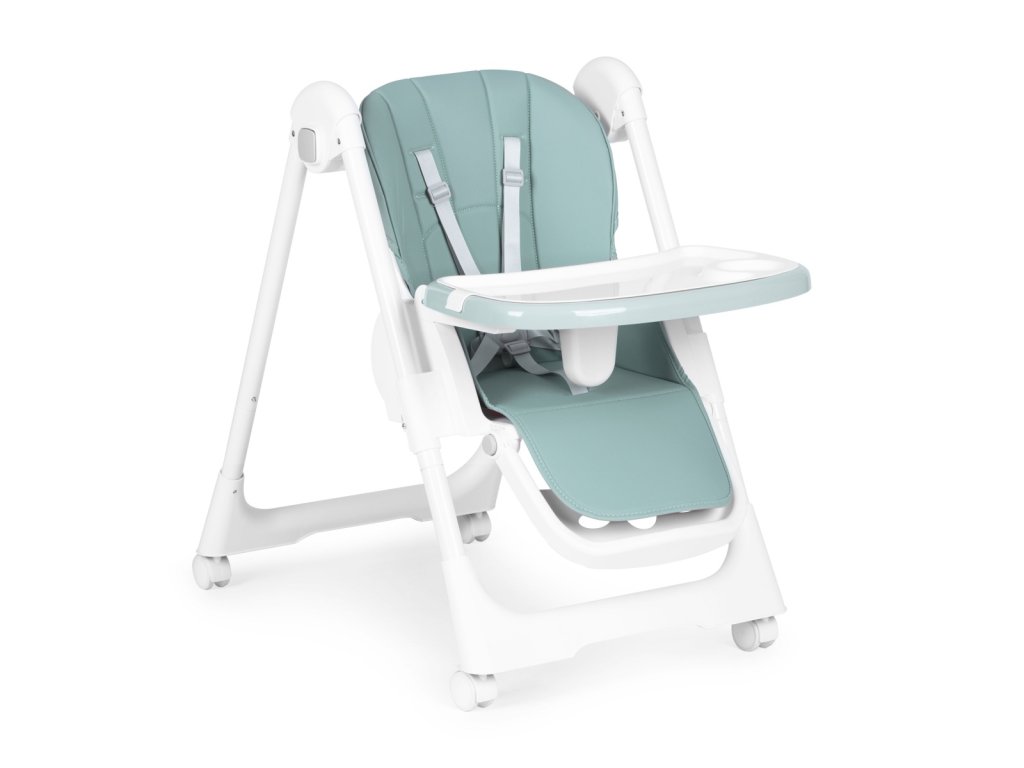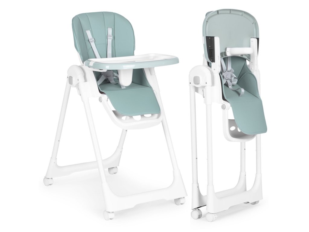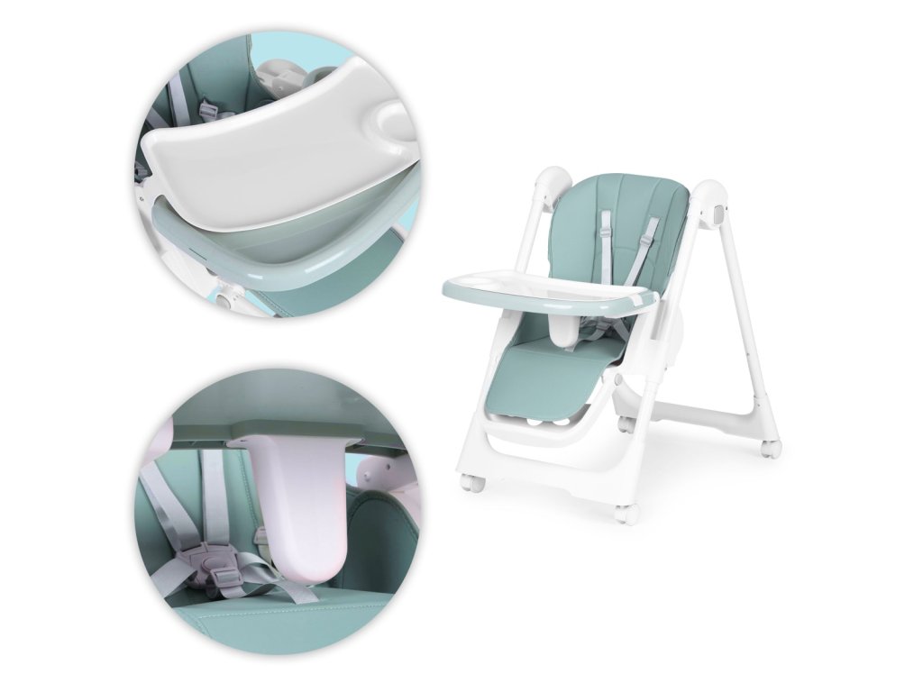 Jídelní židlička s nastavitelnou výškou, ekokůže, táckem - zelená