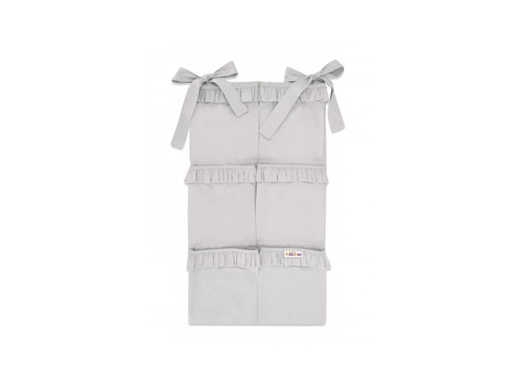 Kapsář na postýlku s volánky ROYAL, 6 kapes - šedý