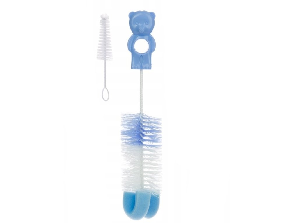 Kartáč k mytí lahviček a saviček s houbičkou - modrý