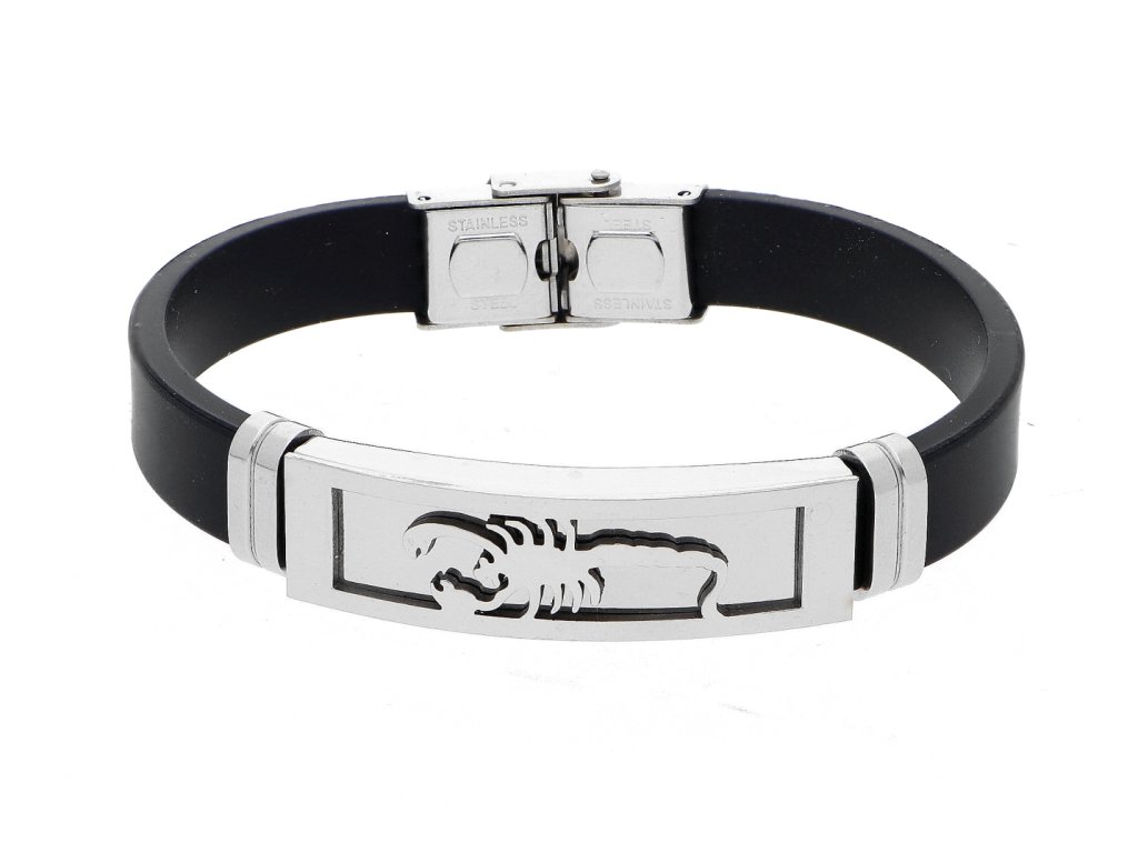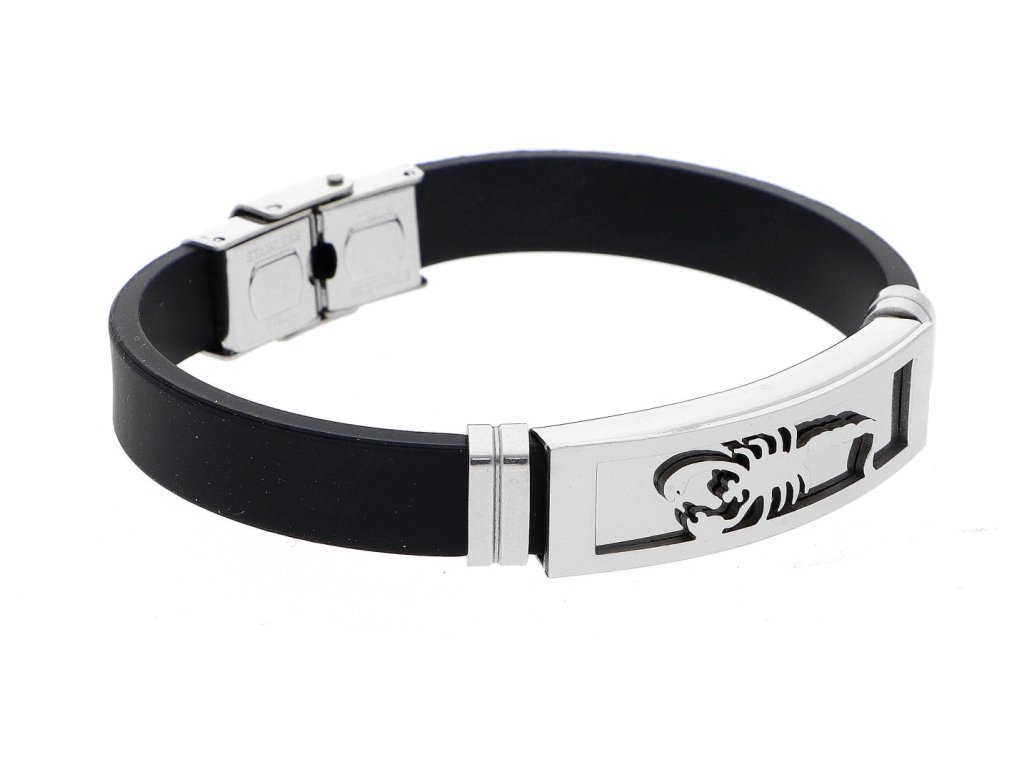 Atraktivní náramky z kaučuku dekorované motivy z chirurgické oceli nejen muže.