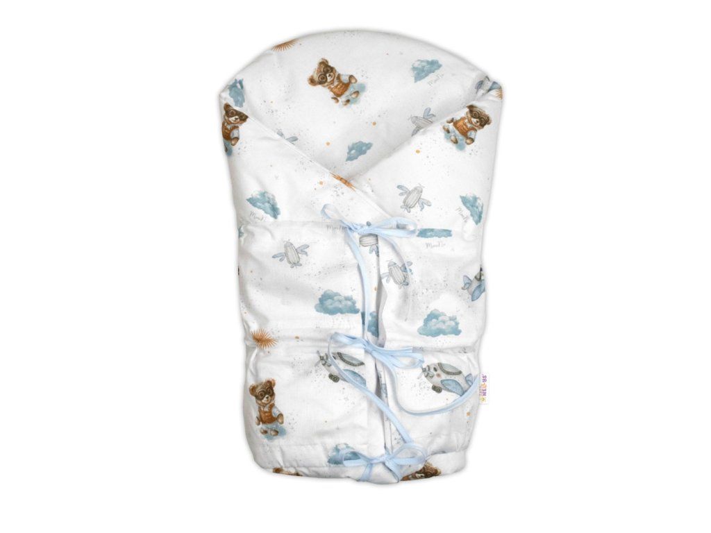Šněrovací zavinovačka s výplní – Baby Nellys. Baby Nellys – česká značka, která je zárukou bezpečí, kvality a pohodlí pro vaše miminko. Praktická šněrovací zavinovačka je ideální od prvních dnů života. Miminku poskytuje jemné zabalení, jistotu, teplo a pocit bezpečí, který podporuje klidnější spánek. Zavinovačka Baby Nellys je oblíbenou volbou maminek po celé České republice díky pečlivému zpracování a kvalitním materiálům, které jsou vhodné pro citlivou pokožku novorozenců. Rozměry a provedení. Rozměr rozložené zavinovačky: cca 70 × 77 cm. Vrchní část tvoří jemná potištěná bavlna, která je příjemná a prodyšná. Vnitřní výplň z hypoalergenního dutého vlákna zajišťuje lehké, ale hřejivé zabalení a pohodlí. Praktické vlastnosti. Po stranách jsou našita křídla se třemi šňůrkami v tunýlcích, které umožňují bezpečné utažení podle potřeby. Povlak lze prát samostatně bez výplně. Tato možnost výrazně usnadňuje rychlou údržbu při každodenním používání. Zavinovačka je vhodná do postýlky, kočárku i kolébky, ideální pro celoroční využití. Doporučení. Doporučujeme dokoupit náhradní povlak, aby byla vždy po ruce čistá varianta a výměna mohla proběhnout během chvilky. Náhradní povlaky Baby Nellys najdete v našem e-shopu. Materiál a údržba. Vrchní látka: 100% bavlna. Výplň: duté hypoalergenní vlákno. Praní povlaku: 40 °C. Praní výplně: 30 °C. Proč zvolit Baby Nellys. Baby Nellys je česká značka s dlouholetou tradicí a důrazem na bezpečné materiály a kvalitní zpracování. Produkty jsou navrženy s ohledem na pohodlí miminka a praktické použití v každodenním životě. Zavinovačky Baby Nellys patří mezi nejprodávanější výbavu pro novorozence v ČR. Důležité informace. Certifikováno a atestováno – 1. jakost, bezpečné pro děti. Materiál splňuje evropský standard OEKO-TEX. Před prvním použitím doporučujeme výrobek vyprat. Barvy se mohou mírně lišit v závislosti na nastavení monitoru. Rozměry se mohou lišit o ±3 cm. Pravidelně kontrolujte švy a šňůrky, při poškození výrobek dále nepoužívejte.Doplňkové parametry
