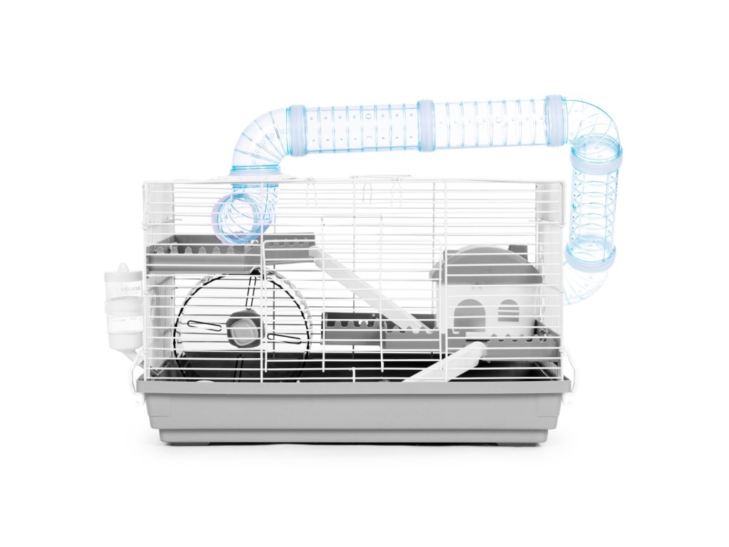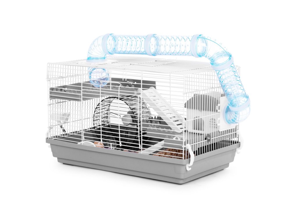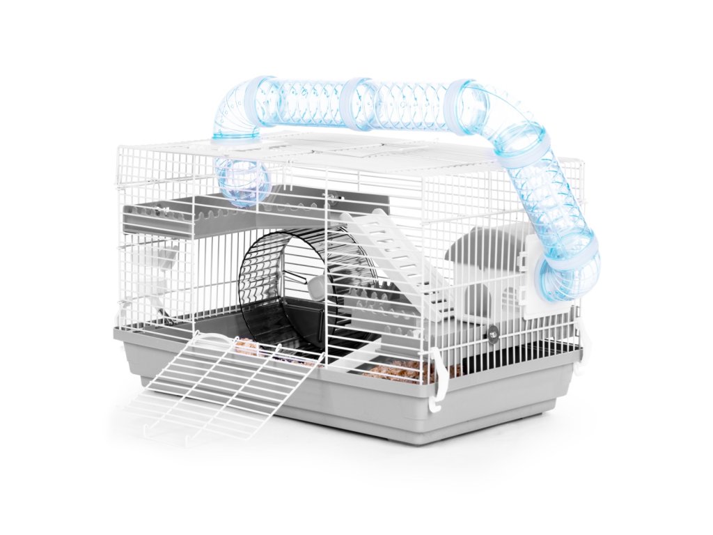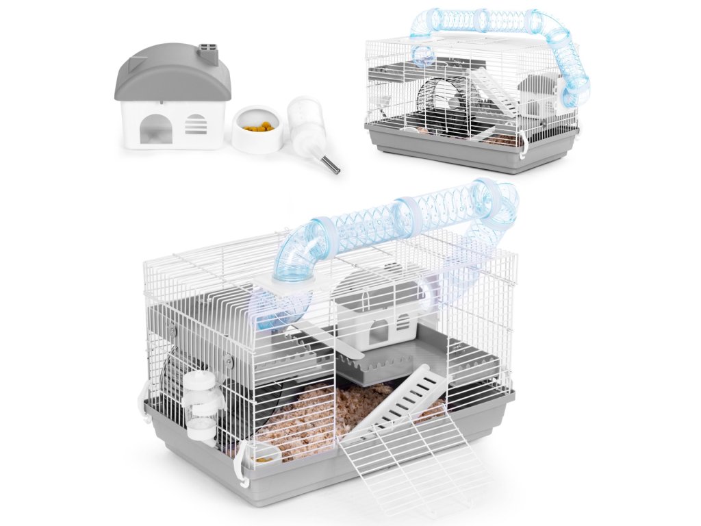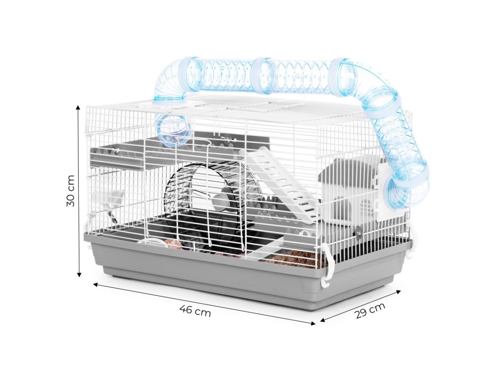 Klec pro hlodavce s příslušenstvím – bezpečné a zábavné bydlení pro malé mazlíčky. Pohodlná klec pro křečky, potkany a další malé hlodavce nabízí vše, co váš mazlíček potřebuje pro každodenní pohodu. Odolná konstrukce z bezpečných a pevných materiálů vytváří příjemné a podnětné prostředí pro hru i odpočinek. Stabilní a promyšlená konstrukce. Bezpečná pro zvířata. Ocel s práškovým lakováním pro dlouhou životnost a snadnou údržbu. Upevnění na 4 západky jistí spojení drátěné části s plastovým dnem. Snadná montáž a jednoduché čištění pro každodenní provoz. Plné vybavení pro aktivní život. Kompletně vybavená klec poskytne vašemu hlodavci komfort, bezpečí i dostatek podnětů během dne. Tunel, domeček a kolotoč. Tunel vybízí k prozkoumávání, kolotoč podporuje přirozený pohyb a domeček slouží jako klidné útočiště po hře. Dvě patra. Více úrovní přináší pestřejší prostředí a více místa pro schovávání. Každé patro má vlastní vstup, takže se mazlíček snadno dostane kamkoli. Miska a napáječka. Praktické rozměry usnadňují přístup k potravě a vodě a podporují pravidelný pitný režim. Praktické detaily pro snadné používání. Boční vstup usnadňuje kontakt se zvířetem a manipulaci při vkládání nebo vyndávání mazlíčka. Čtyři jistící prvky pevně spojují ocelovou konstrukci s plastovým dnem a zajišťují stabilitu. Horní madlo umožňuje pohodlné přenášení klece při cestách nebo návštěvě veterináře. Specifikace. Hmotnost: 3,7 kg. Rozměry klece: 30 × 46 × 29 cm. Rozměry balení: 52 × 33 × 14 cm. Materiál: plast, ocel s práškovým lakem. Součást balení: domeček, tunel, napáječka, kolotoč, dvě patra, miska. Konstrukce bezpečná pro zvířata. Péče a údržba. Pravidelně odstraňujte znečištění a měňte podestýlku. Příslušenství myjte vlažnou vodou s jemným čisticím prostředkem a důkladně osušte. Kontrolujte stav mříží a západek a v případě poškození díly vyměňte. Umístěte klec mimo průvan a přímé slunce. Upozornění. Toto není hračka pro děti. Používejte pouze k určenému účelu. Zvíře pravidelně kontrolujte a zajistěte přístup k čerstvé vodě a vhodnému krmivu. Při poškození přestaňte výrobek používat. Rozměry jsou měřeny naplocho a mohou se lišit v rámci běžné výrobní tolerance. Zobrazení barev se může lišit v závislosti na nastavení displeje. Proč si vybrat tuto klec. Kombinuje bezpečné materiály, bohaté příslušenství a praktické řešení pro snadnou manipulaci. Vytváří podnětné prostředí, které podporuje přirozené chování hlodavců a zvyšuje jejich pohodu každý den.Doplňkové parametry