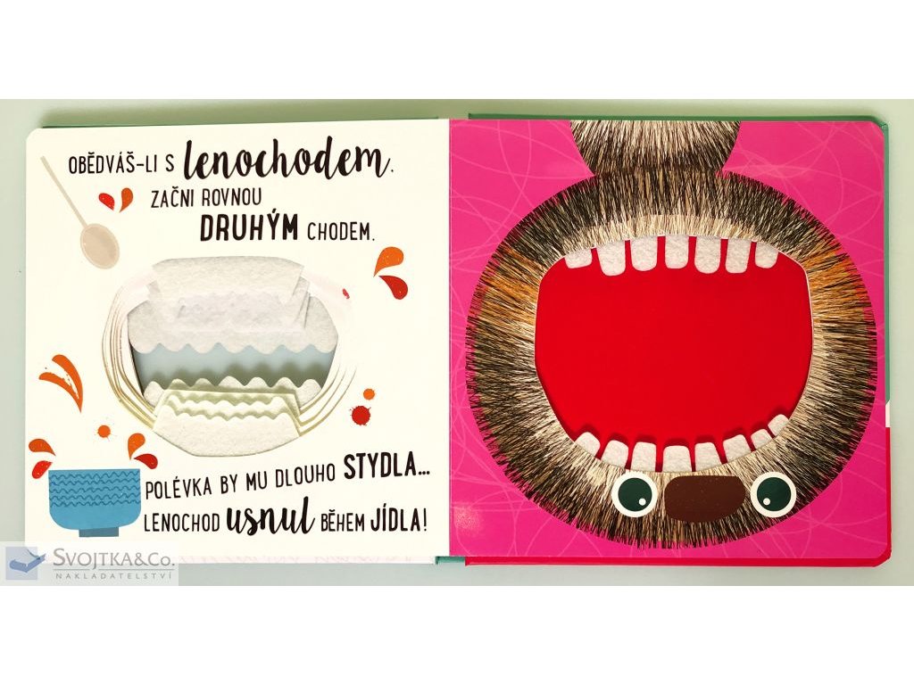 Yettimu špagety nedávej, nebo se naštve a bude zlej. Odvážíš se jeho a další tvory nakrmit v knížce, co má zuby? Vtipné verše a ilustrace nabízí spoustu zábavy. Yettimu špagety nedávej, nebo se naštve a bude zlej. Odvážíš se jeho a další tvory nakrmit v knížce, co má zuby? Vtipné verše a ilustrace nabízí spoustu zábavy. Yetti nejí špagety, šimpanzi nejedí krevety, kosatku zase nepotěšíš kapustou. Přečti si tuto vtipnou veršovanou knížku a zjisti, jaké pokrmy různá zvířata neocení. A dej si pozor, ať tě nějaký hladový tvor nekousne do prstu tohle leporelo má totiž ústa a na každé stránce jiné zuby! rozměry: 186 x 186 mm, počet stran: 12, Videonávod najdete ZDE: ZDEDoplňkové parametry