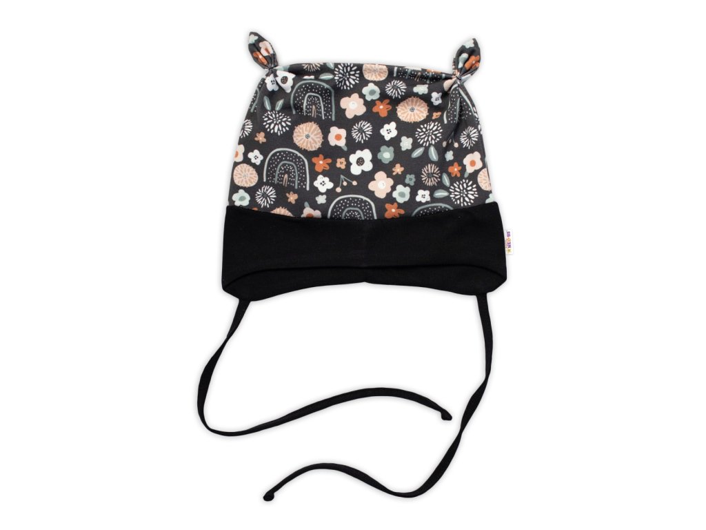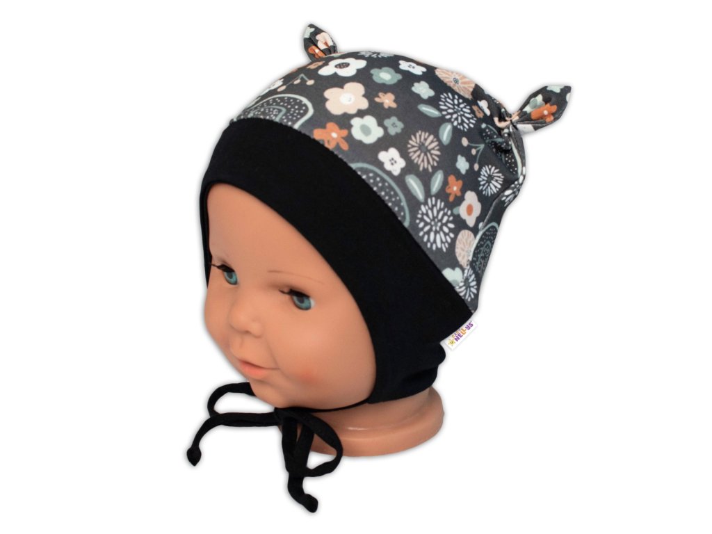 Kojenecká čepička uzlíček na zavazování - Palouček, grafit, vel. 68/74