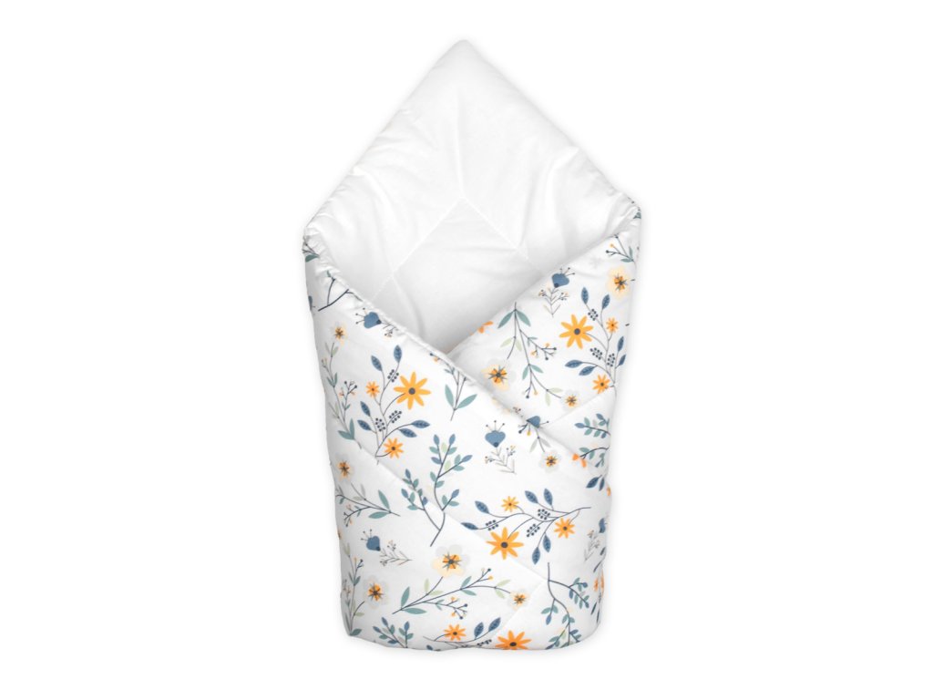 Kojenecká zavinovačka Klasik- Kouzelná louka, bílá s potiskem