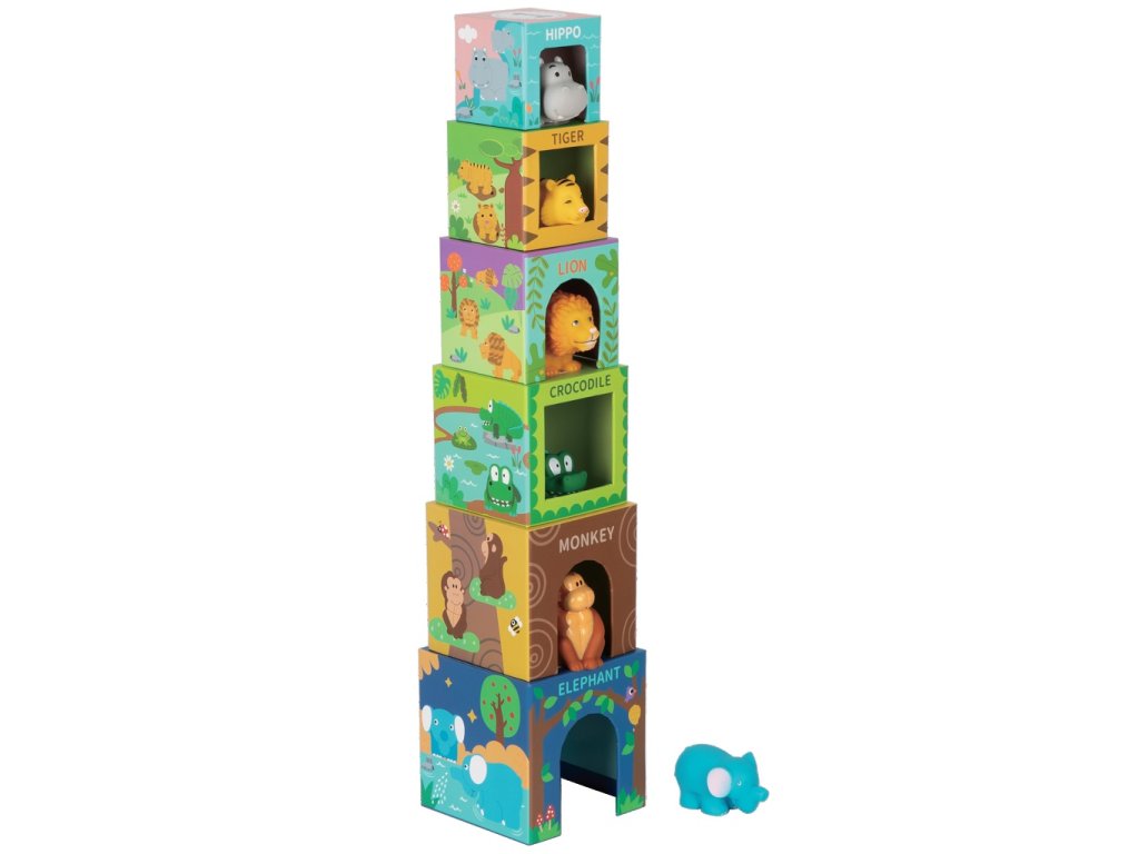 Sada stavebních kostek se zvířátky – 6 kostek s okénky Postav tu nejvyšší věž! Těchto 6 barevně potisknutých kostek nabízí nejen možnost stavění do výšky, ale také objevování – každá kostka má své okénko a uvnitř se skrývá exotické zvířátko z pouští a pralesů. Skládání, stavění a objevování podporuje kreativitu i přirozenou dětskou zvídavost. Díky lehkému materiálu jsou kostky ideální také na cesty. Zvířátka lze používat samostatně při hraní doma i venku (kartonové kostky nesmí přijít do kontaktu s vodou). Celá sada rozvíjí fantazii, motoriku i koordinaci ruka–oko. Hlavní výhody Podporuje jemnou motoriku a představivost. Pomáhá rozvíjet koordinaci ruka–oko a celkovou zručnost. Posiluje vztah dětí k přírodě a zvířatům. Lehká a skladná sada vhodná na hraní doma i na cestách. Ekologické zpracování Certifikát kvality zaručuje, že materiál v produktu pochází z odpovědně obhospodařovaných lesů. Nákupem podporujete šetrné hospodaření, ochranu přírody a zdravé, stabilní lesy odolné vůči klimatickým změnám. Důležité informace Hračka je vhodná pro děti od 18 měsíců. Kartonové kostky nejsou určeny do vody. Obal není hračka, uchovávejte mimo dosah dětí. Před prvním použitím zkontrolujte stav výrobku. Používejte pod dohledem dospělé osoby.Doplňkové parametry