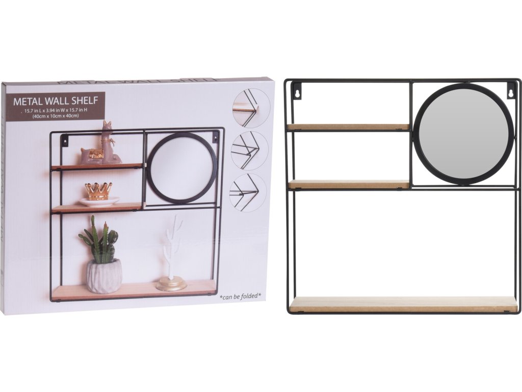 Kovová police na stěnu se zrcadlem