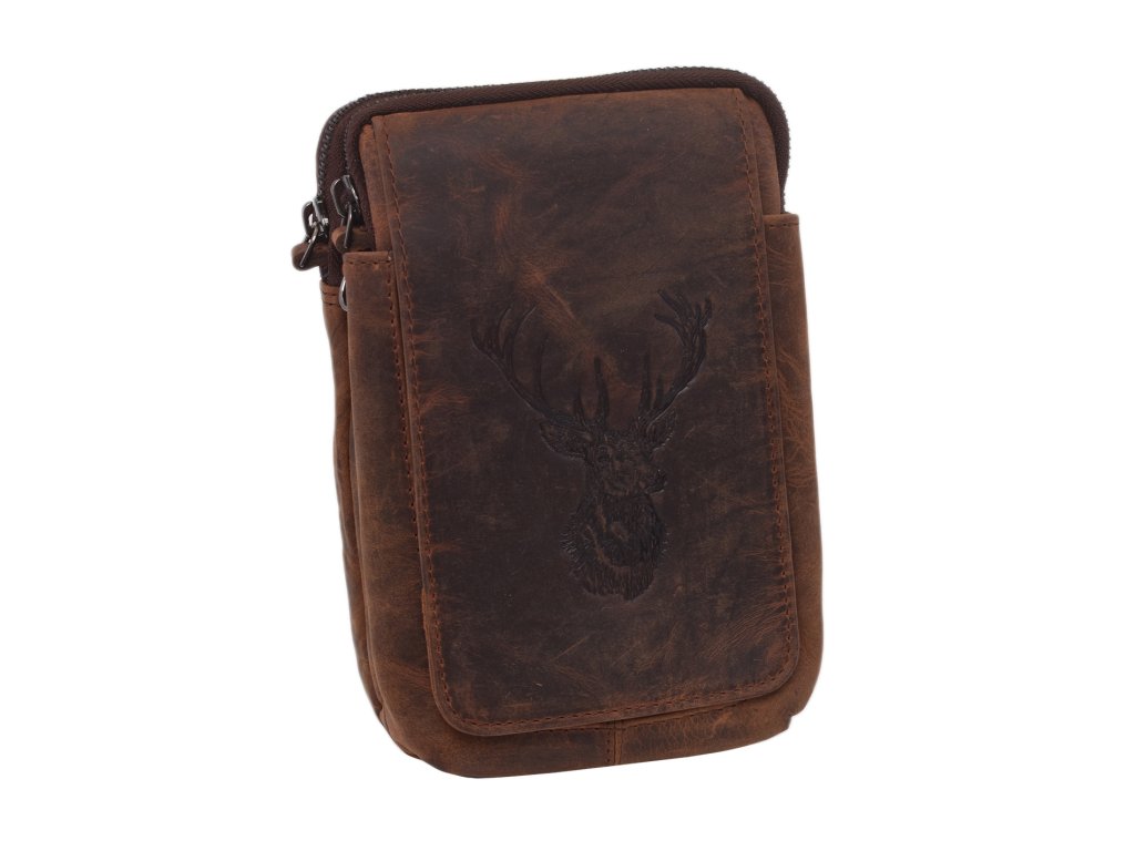 Kožené pouzdro na opasek tmavěhnědá embos jelen hlava 250887