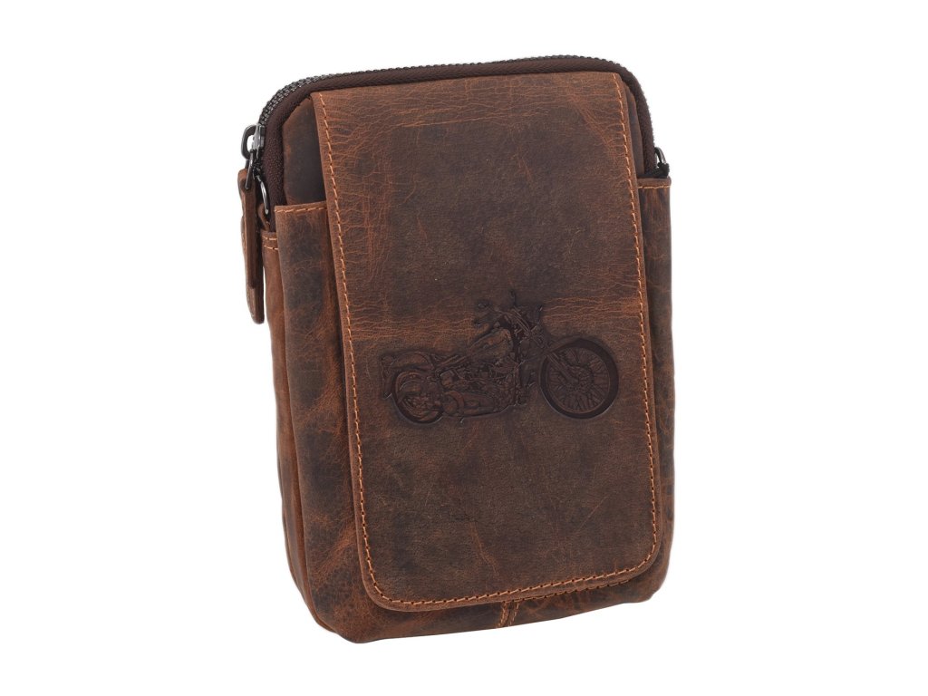 Kožené pouzdro na opasek tmavěhnědá embos motorka 250887