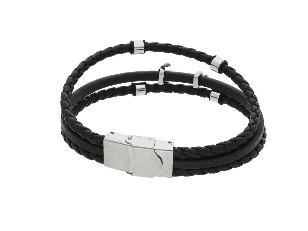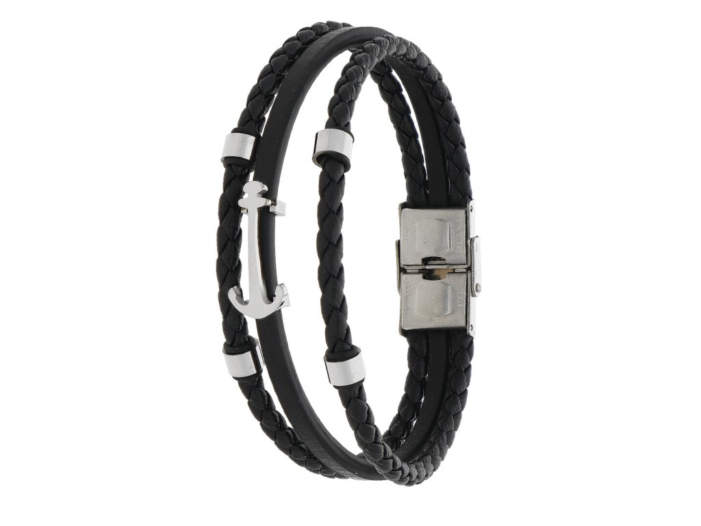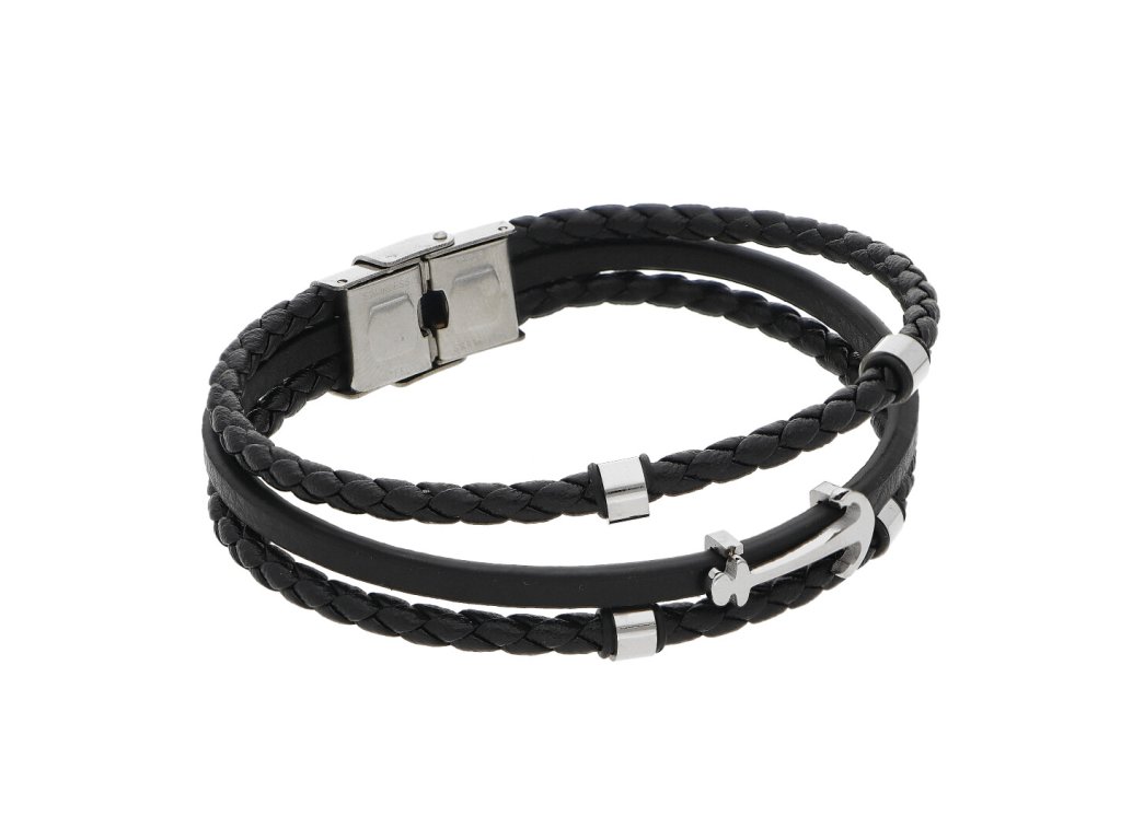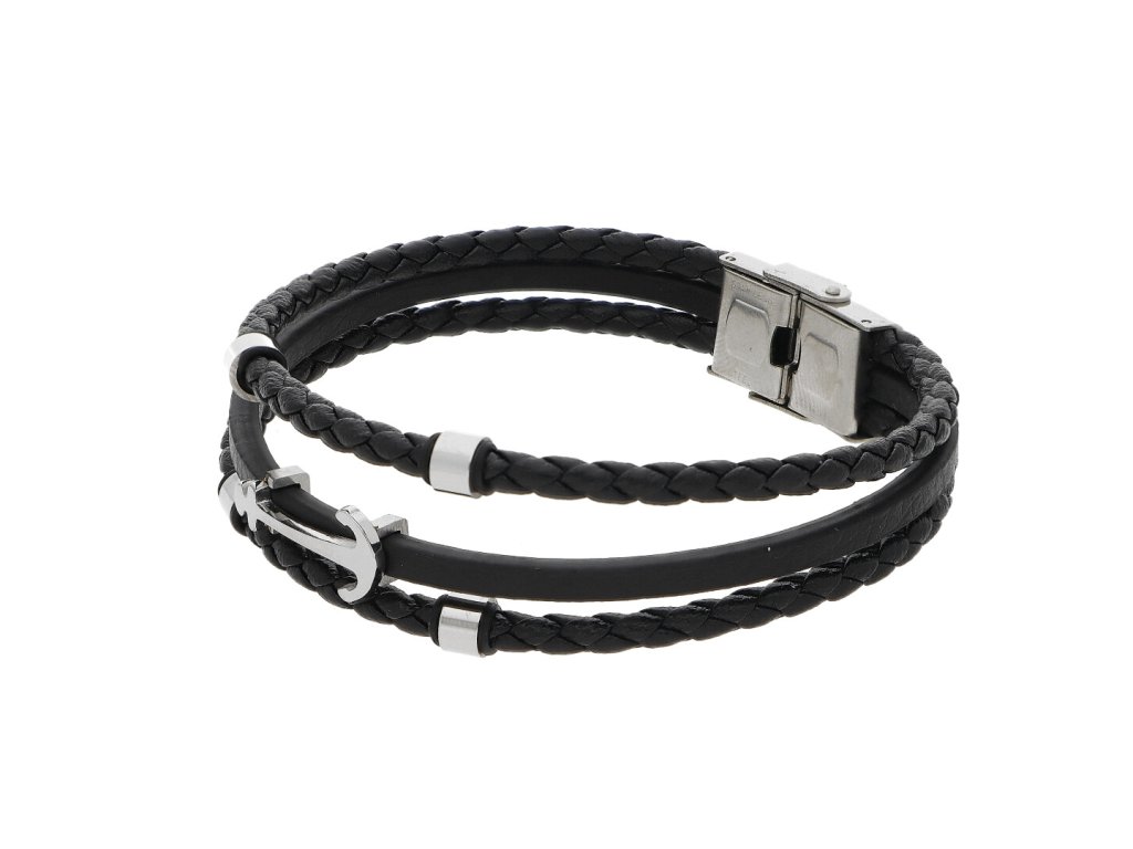 Kožený náramek černý s kotvou LHF232 + dárkové balení