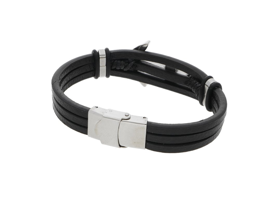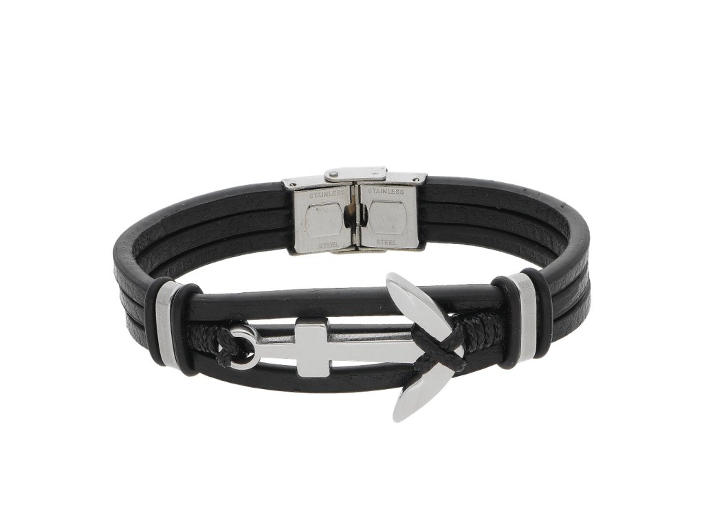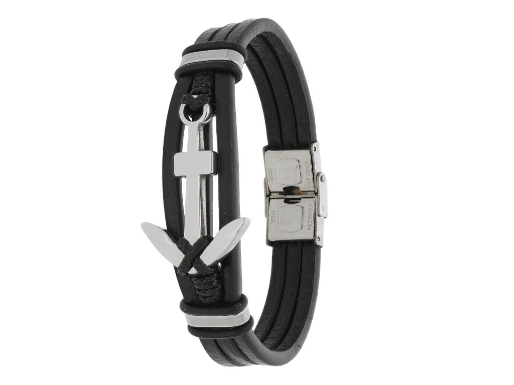 Kožený náramek černý s kotvou LHF242 + dárkové balení