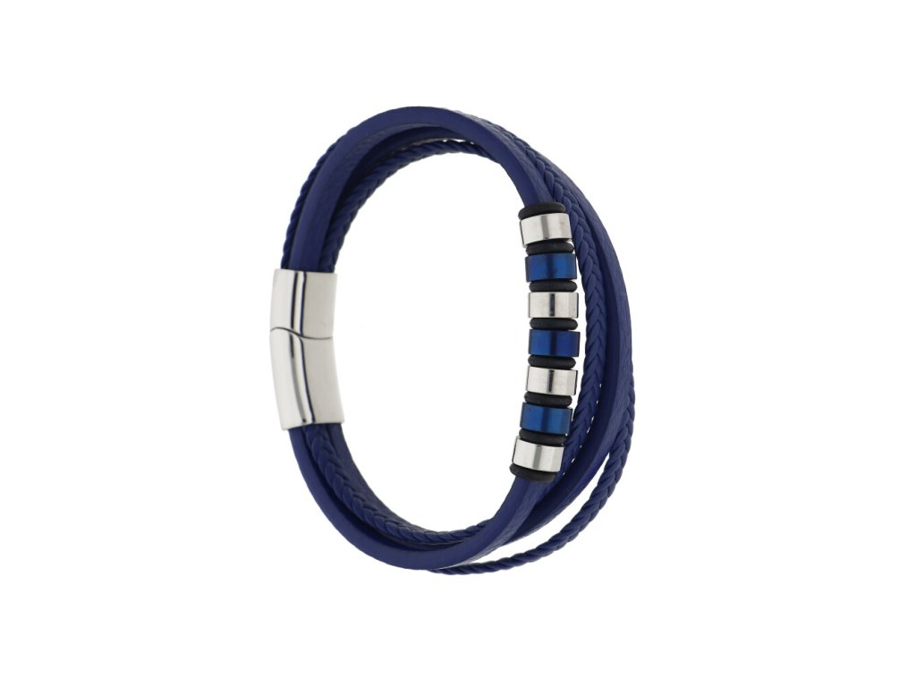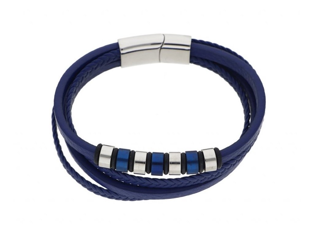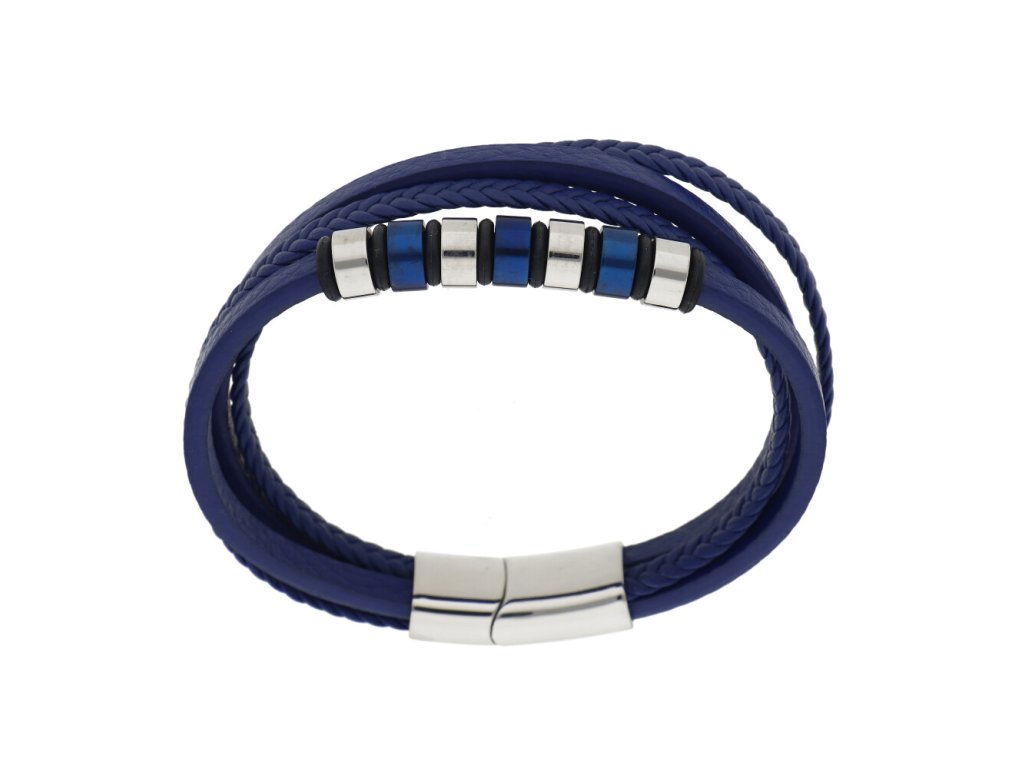 Kožený náramek K1265 modrý + dárkové balení