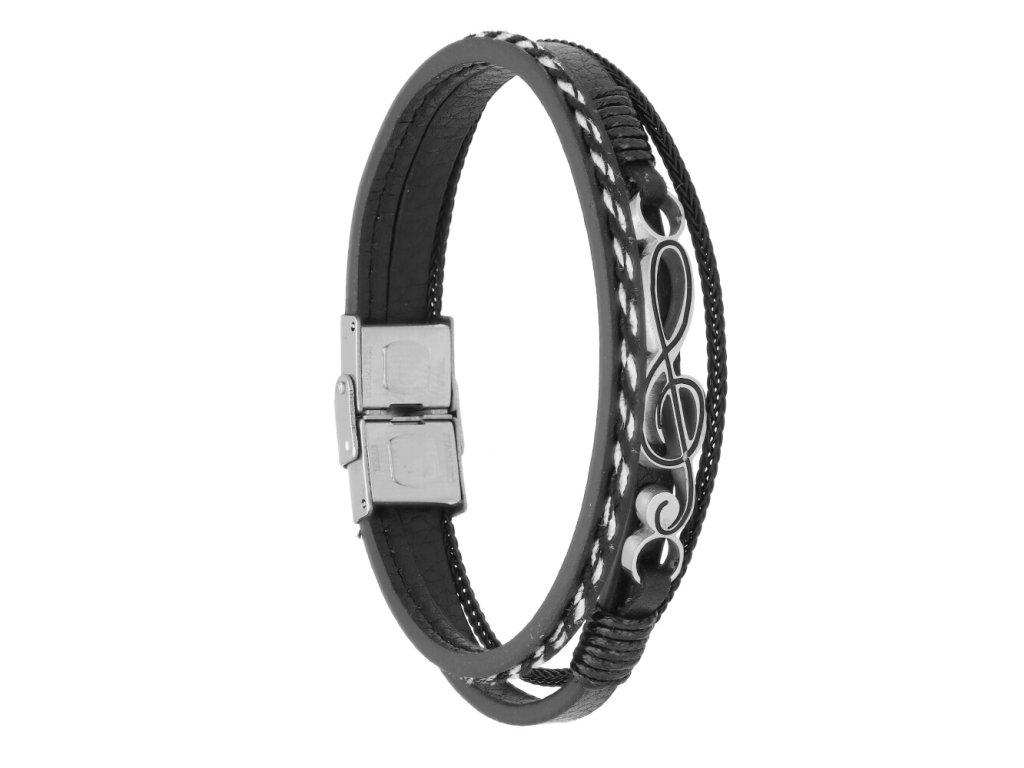 Kožený náramek s houslovým klíčem KAR292 + dárkové balení