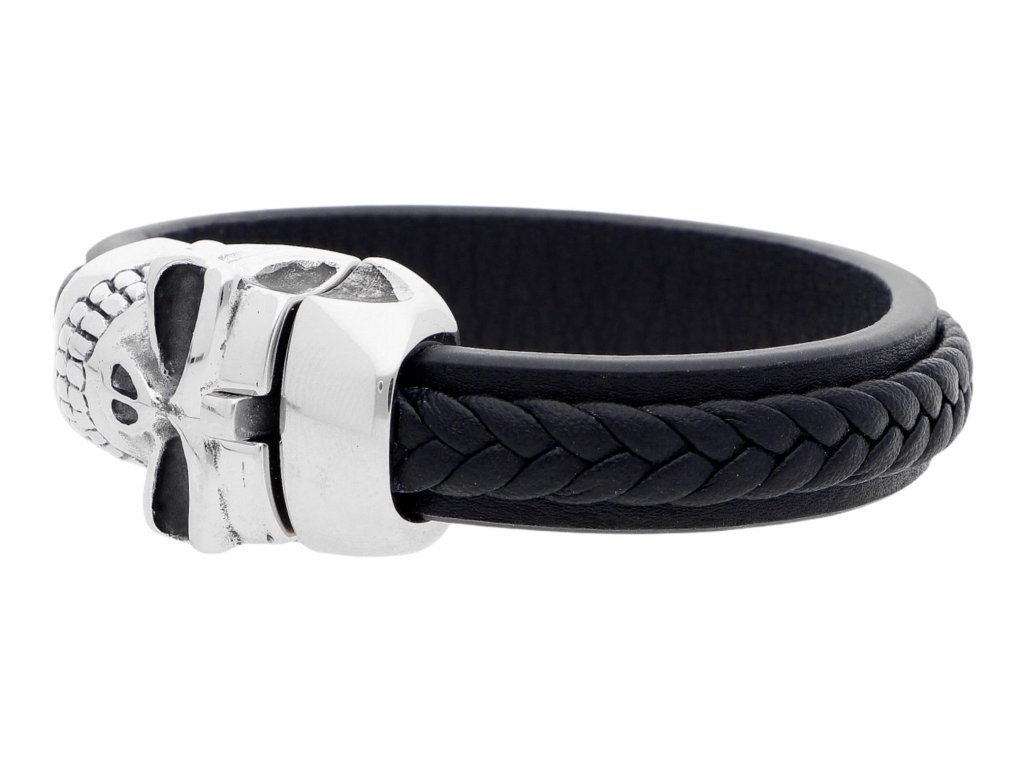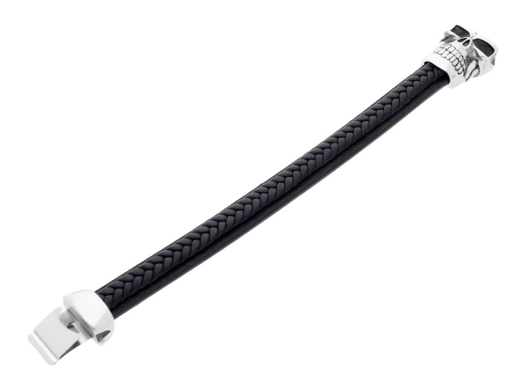 Kožený náramek s lebkou černý + dárkové balení
