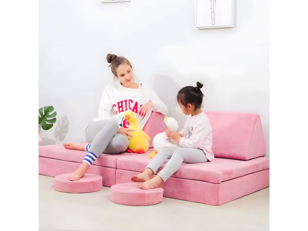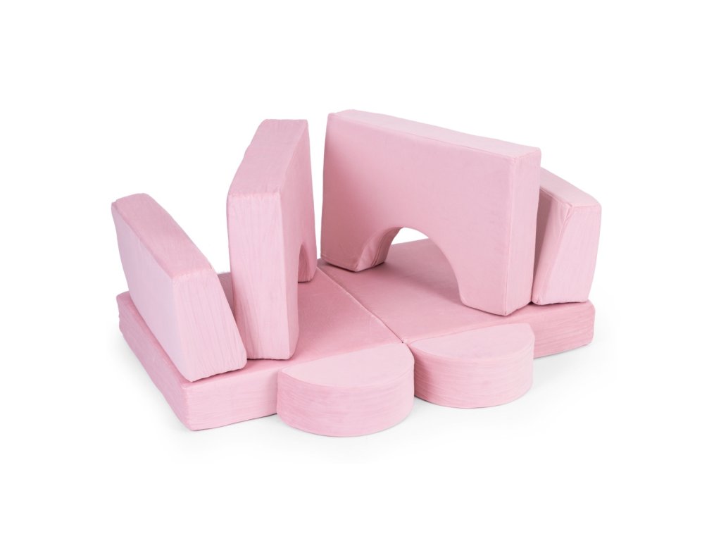 Kreativní dětská pohovka z měkkých polštářů – skládací modulární set 8 dílů - růžová