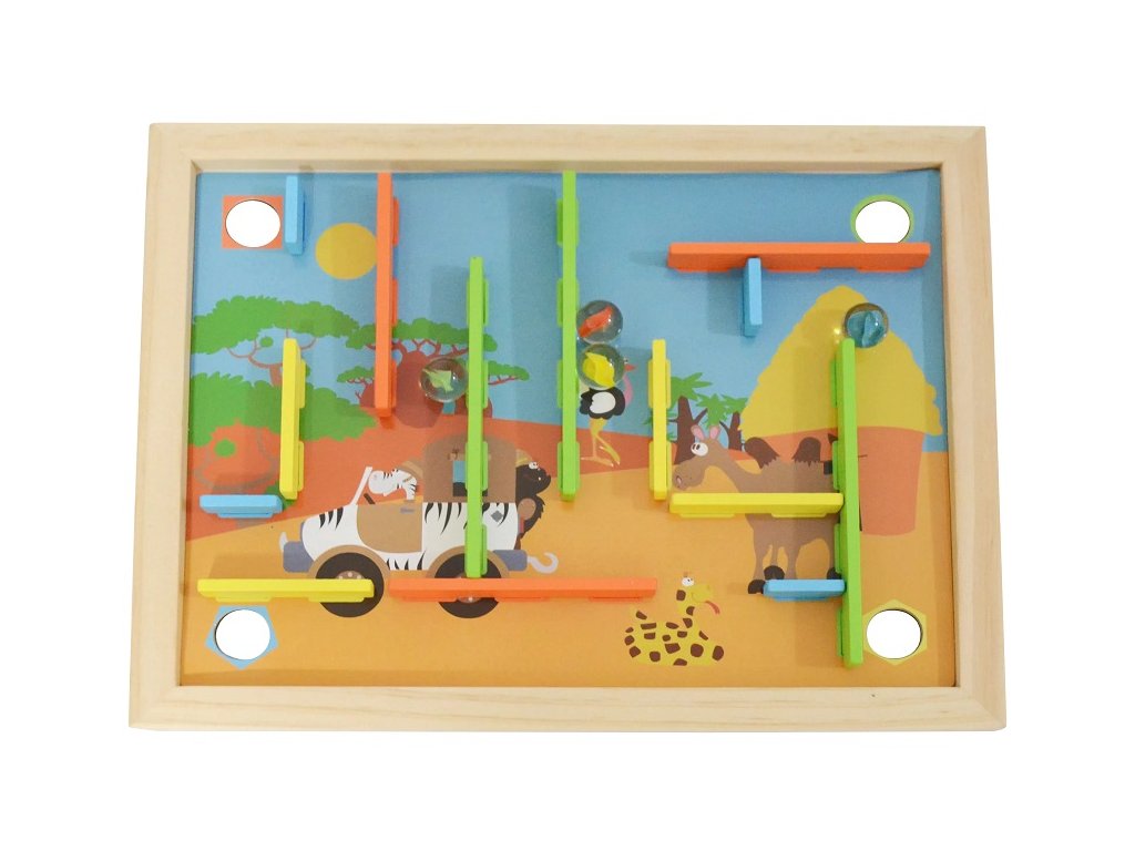 Máte rádi hlavolamy a hádanky? Zaujmou Vás různé bludiště a labyrinty? Pak je pro Vás tento kreativní naklápěcí labyrint tím pravým. Umístěte dřevěné překážky do správných otvorů na desce podle barev, nebo si utvořte dráhu vlastní a hra může začít. Položte kuličky na libovolné místo a nakláněním základní hrací plochy se je snažte umístit do určených otvorů. Nebo můžete dosáhnout stanoveného cíle tím, že budete jednotlivé kuličky cvrnkat do otvorů. Hlavní vlastnosti: obsahuje 22 dílů rozvíjí jemnou motoriku a zručnost zlepšuje obratnost a koncentraciDoplňkové parametry