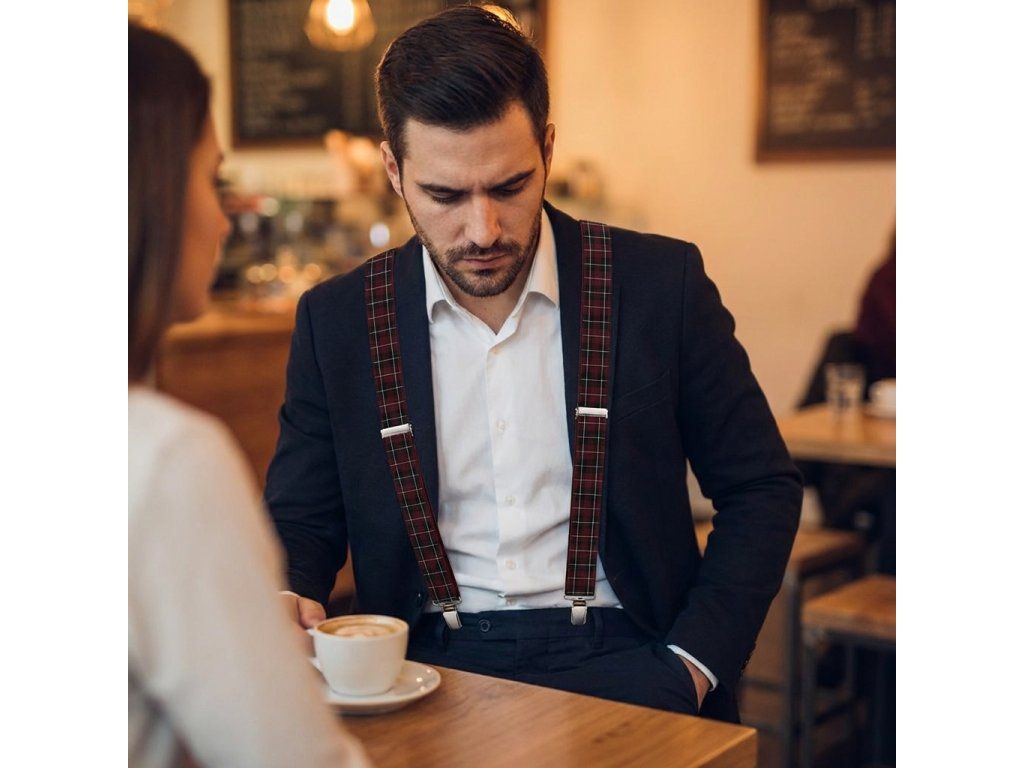 Kšandy pánské, červeno - černé káro MB2039