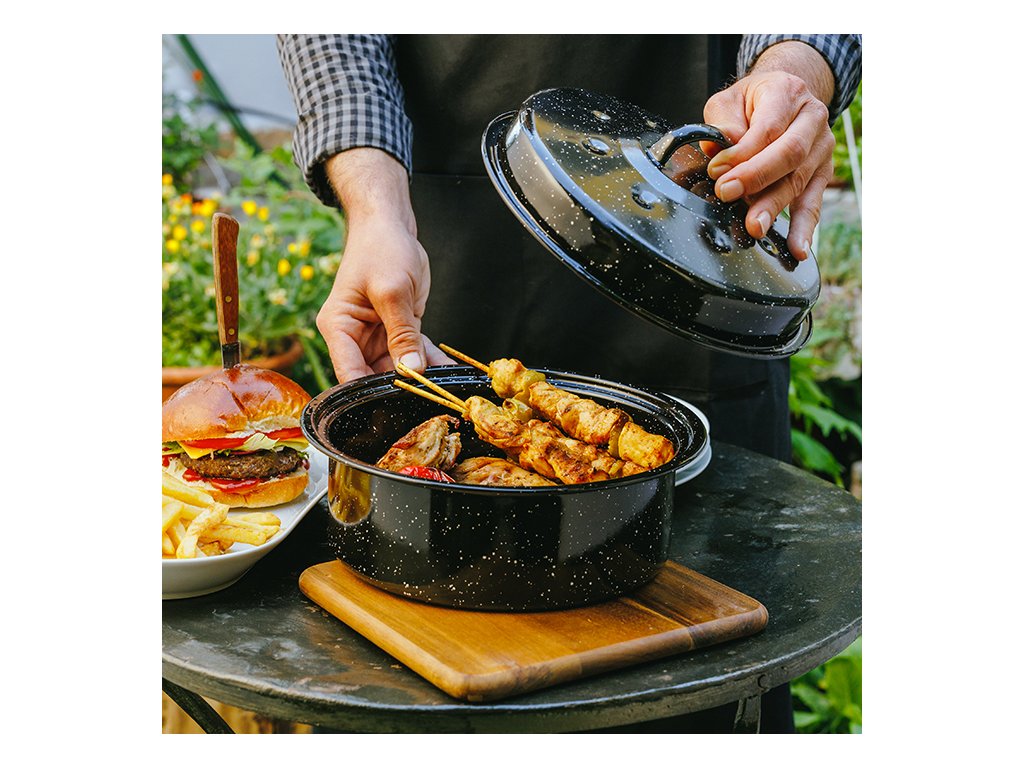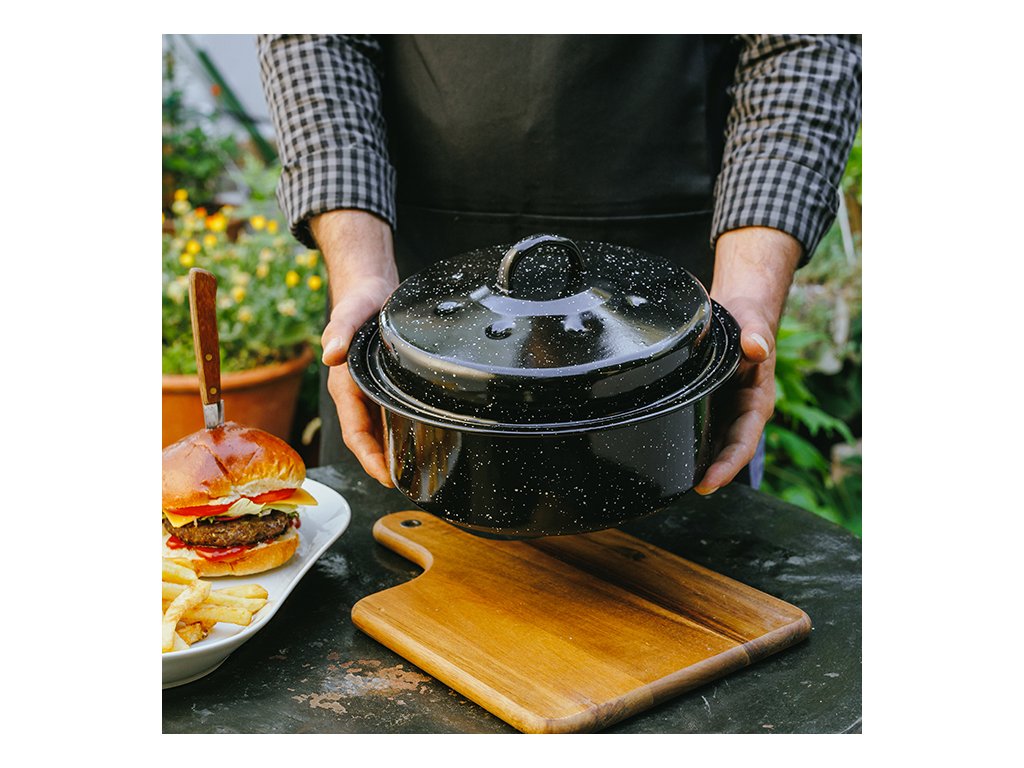 Smaltovaný pekáč o objemu 3 litry je ideální pro každodenní použití v kuchyni. Pekáč je vyroben z uhlíkové oceli a smaltovaného povlaku. Smalt je materiál, který se rychle zahřívá a pomalu ochlazuje, čímž udrží vařené jídlo déle teplé. Zajišťuje rovnoměrné rozložení tepla během pečení. Vykazuje velkou odolnost proti poškrábání a vysokým teplotám, je lehký, snadno se přenáší a čistí. Pekáč je vybaven praktickým víkem s rukojetí. Vhodný do myčky