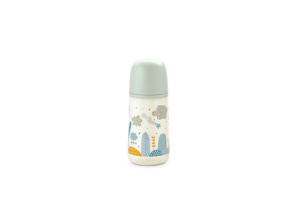 Splňte sny o spokojeném bříšku s lahvičkami DREAMS. Lahvičky DREAMS nejsou jen praktickým řešením pro nasycení vašeho miminka, ale jsou také nedílnou součástí každodenní péče, ve které má správný vývoj dítěte klíčové místo. Tyto lahvičky byly navrženy tak, aby podpořily přirozený vývoj ústní dutiny dítěte. Lahvička o objemu 270 ml je dodávána s fyziologickým dudlíkem SX Pro se středním průtokem a antikolikovým ventilem. Dudlík je vyroben z měkkého a pružného silikonu, který svou texturou připomíná matčin prsní dvorec, a zároveň se dokonale přizpůsobuje tvaru patra dítěte. Klíčové vlastnosti dudlíku: Středová poloha krčku dudlíku: Krček dudlíku je umístěn přesně uprostřed základny, což zajišťuje snadné přizpůsobení v ústní dutině dítěte, což je obzvláště důležité během růstu. Plochá a symetrická hlavička: Umožňuje jazyku mít dostatek prostoru pro přirozené a pohodlné umístění. Dlouhý krček 20 mm: Dosahuje až k hranici tvrdého a měkkého patra, čímž podporuje správné sání. Zakřivená základna dudlíku: Zajišťuje správné usazení úst, jazyka a čelisti během krmení. Certifikovaná kvalita: Dudlíky jsou schváleny Španělskou společností dětské stomatologie, což potvrzuje jejich bezpečnost a podporu zdravého vývoje dítěte. Lahvičky DREAMS jsou ideální volbou pro každého rodiče, který chce zajistit svému miminku pohodlí, zdravý vývoj a spokojené bříško. Upozornění: Tento produkt není hračka. Před každým použitím zkontrolujte jeho stav. Pokud objevíte známky poškození či opotřebení, obal vyhoďte. Udržujte držák v čistotě – pravidelně jej myjte v teplé vodě s jemným čistícím prostředkem a občas přelijte vroucí vodou. Nedávejte do varu ani nesterilizujte. Uchovávejte mimo dosah dětí. Výrobce. Suavinex Group S.L. C/ del Rublo, R83-94 - Poligono Las Atalayas 03114 ALICANTE HISZPANIA suavinex@suavinex.com +34 965 28 74 322Doplňkové parametry