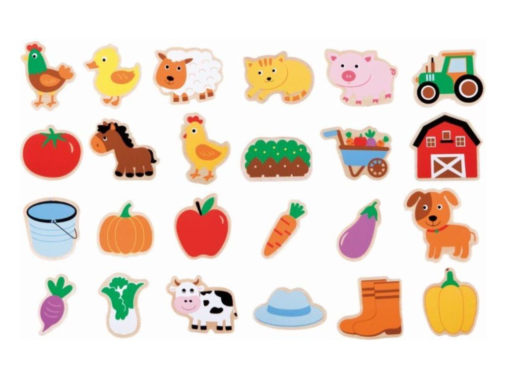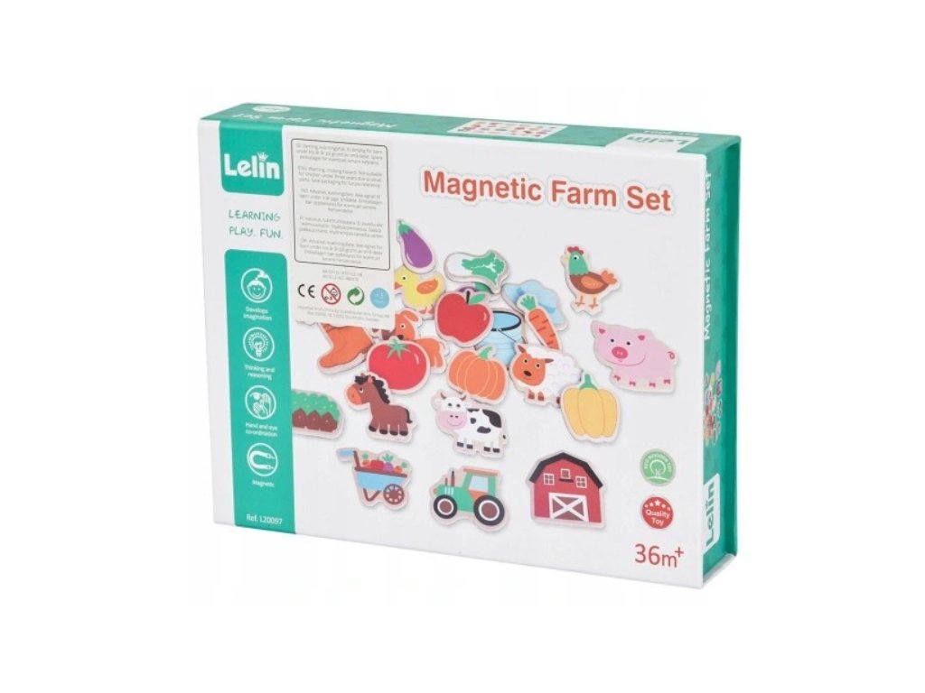 Lelin Dřevěná magnetická sada - Farma, 24ks