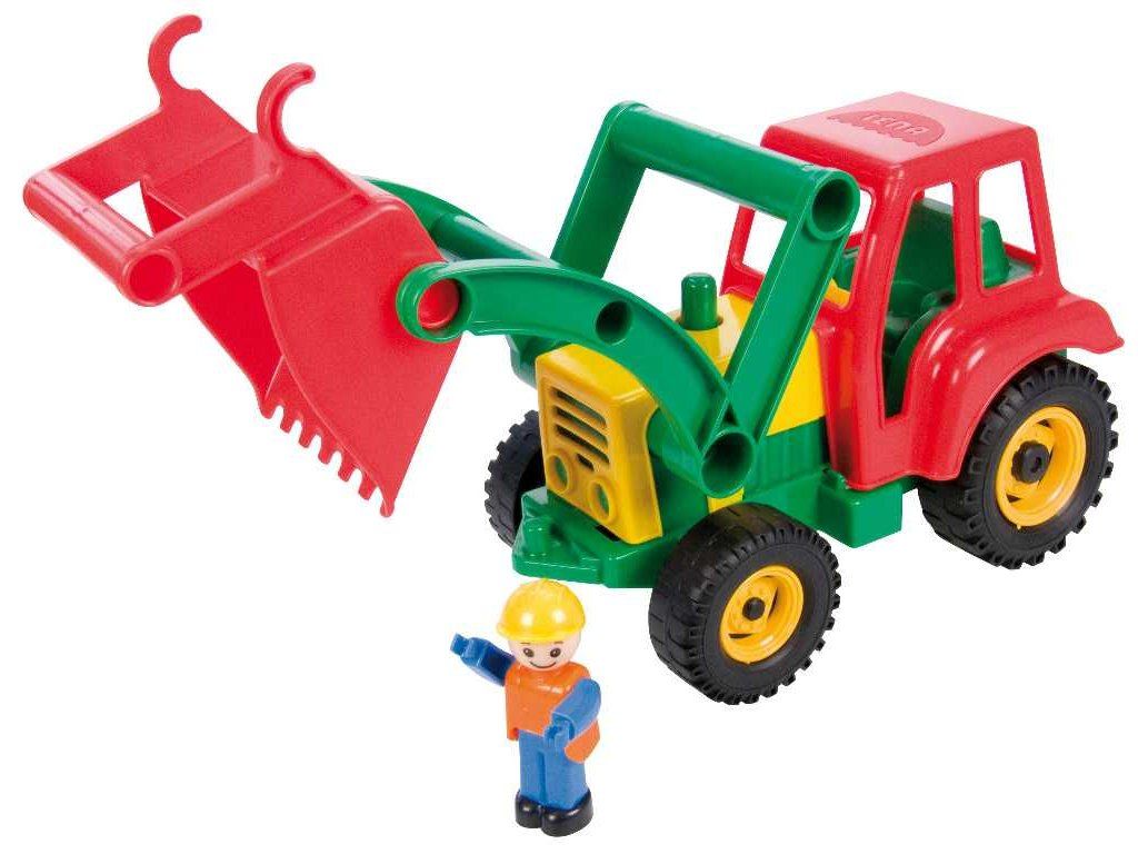 Traktor se lžící z kvalitního plastu a velmi pevnou stavbou. Plně mechanicky funkční. Obsahuje odklopitelnou kabinu s panáčkem. Hlavní vlastnosti: splňuje požadavky EU na bezpečnost hračekplně mechanicky funkčnívyrobeno z kvalitního, odolného plastus aktivním panáčkemDoplňkové parametry
