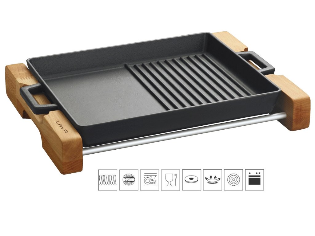 Litinová duo plotýnka 26x32cm s dřevěným podstavcem