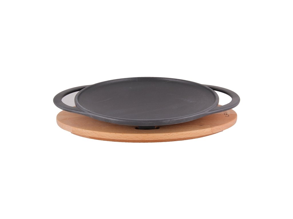 Litinová pánev "wok" 28 cm s dřevěným podstavcem