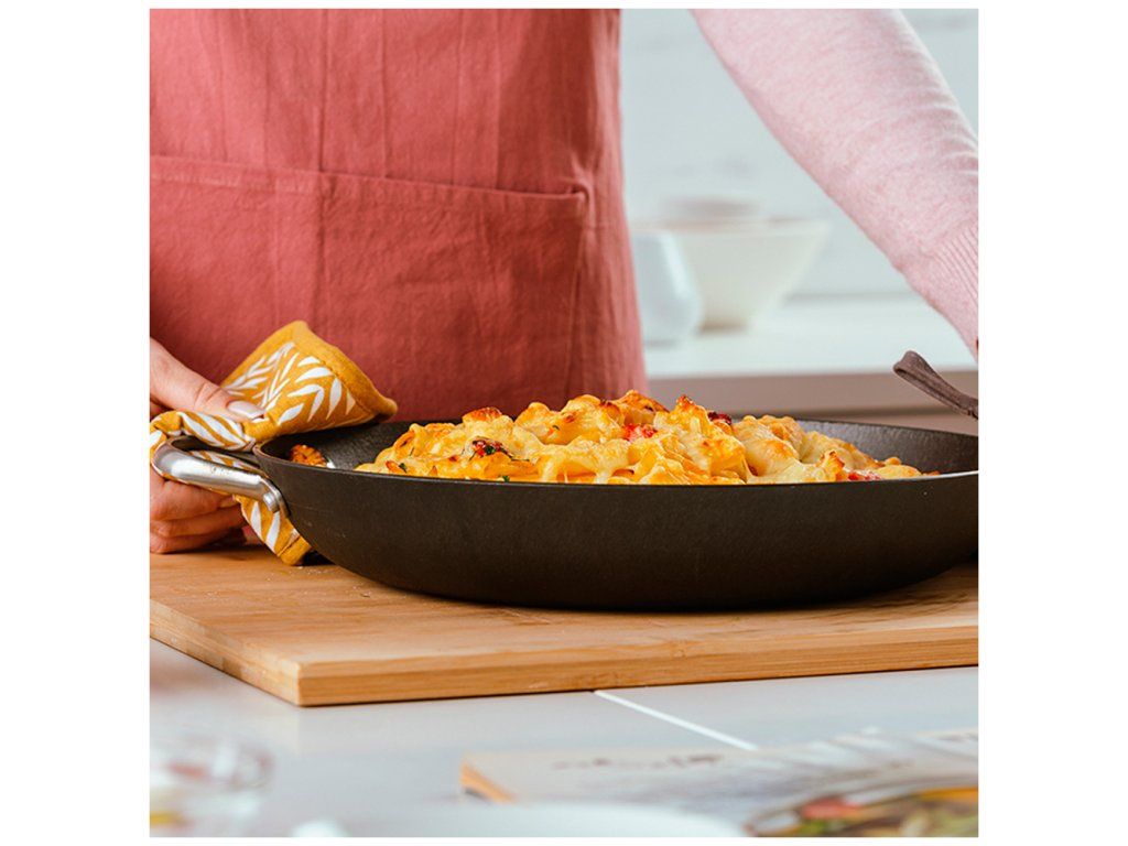 Tato pánev je jako stvořená pro recepty, které začínají prudkým orestováním na plotně a končí pozvolným dopékáním v troubě. Je fantastická na domácí kynuté buchty, pečená kuřecí stehna na bylinkách nebo jako stylová nádoba na rodinnou paellu.
