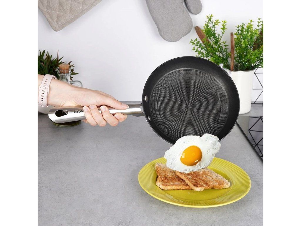 - Ze sporáku přímo do trouby: Robustní rukojeť z nerezové oceli se nespálí ani při vysokých teplotách. Gratinování nebo dopékání masa nebylo nikdy snazší.
