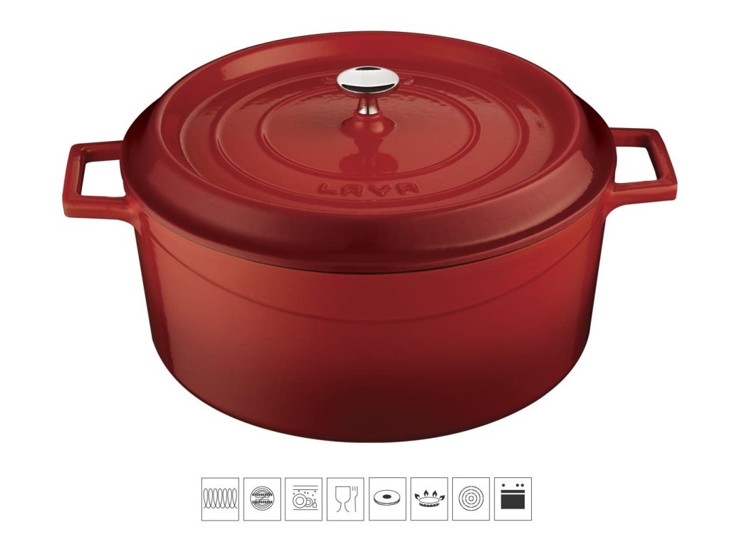 Litinový hrnec kulatý 28cm - červený