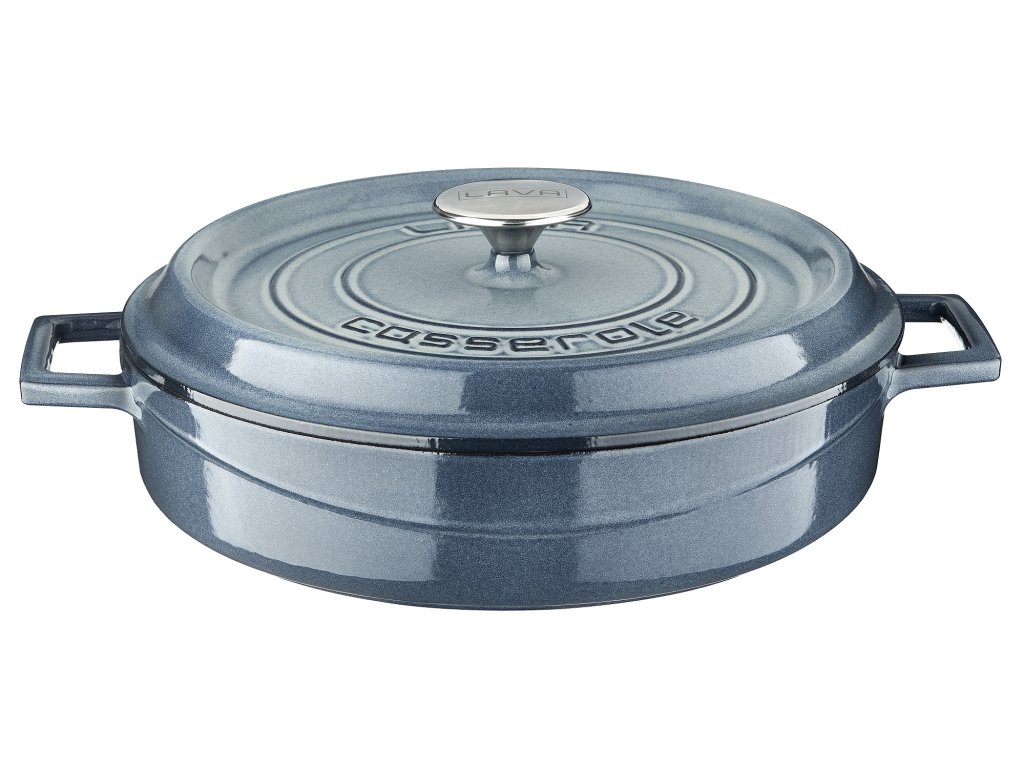 Nízký litinový hrnec prémiové kolekce Majolika grey v elegantní šedé barvě je nadčasový pomocník do Vaší kuchyně. Zvládne vše - dušení, pečení, jídla z jednoho hrnce. Vaření v litinovém nádobí je velice jednoduché. Hrnec vytváří spojení mezi sporákem a Vaším stolem, takže z něj můžete stylově servírovat. Vaše jídlo si zachová svou teplotu a hrnec bude na stole vypadat krásně. Malé hroty pod poklicí zaručují plynulou cirkulaci, vytvářející ideální podmínky pro pomalé vaření, perfektní pro dušení, opékání, pečení a smažení. Litinové nádobí Lava si oblíbíte pro jeho schopnost držet teplo, jednoduché vaření a praktickou nerozbitnost. Tento kastrol Vám nabízí průměr 28 cm, výšku 7 cm a objem 3,5 l.