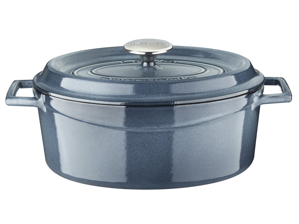 Litinové hrnce jsou robustní, vysoce odolné a mají dlouhou životnost - vydrží Vám i několik generací. Litina je slitina železa s uhlíkem, která přináší spoustu výhod. Litinové nádobí je odolné proti korozi a připálení, skvěle vede a akumuluje teplo, a tudíž je vaření energeticky úsporné. Oválný litinový hrnec je vysoce odolný vůči popraskání, oděru a vysokým teplotám. Průměr hrnce je 29 cm, výška 12 cm a objem 4,6 l. Hrnec je opatřen nepřilnavým povrchem a poklicí. Vhodný na všechny typy vařičů včetně indukce a do trouby. Díky svému elegantnímu barevnému provedení bude ozdobou Vaší kuchyně. Mytí v myčce výrobce nedoporučuje – může snížit jas barev.