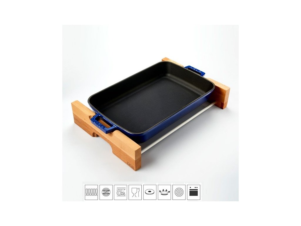 Litinový pekáč 22x30cm s dřevěným podstavcem - modrý