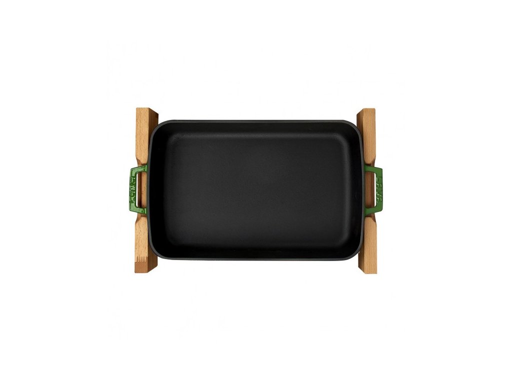 Litinový pekáč 22x30cm s dřevěným podstavcem - zelený