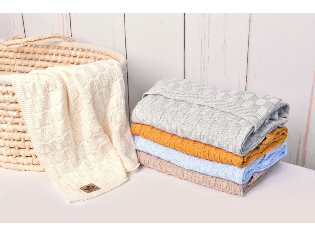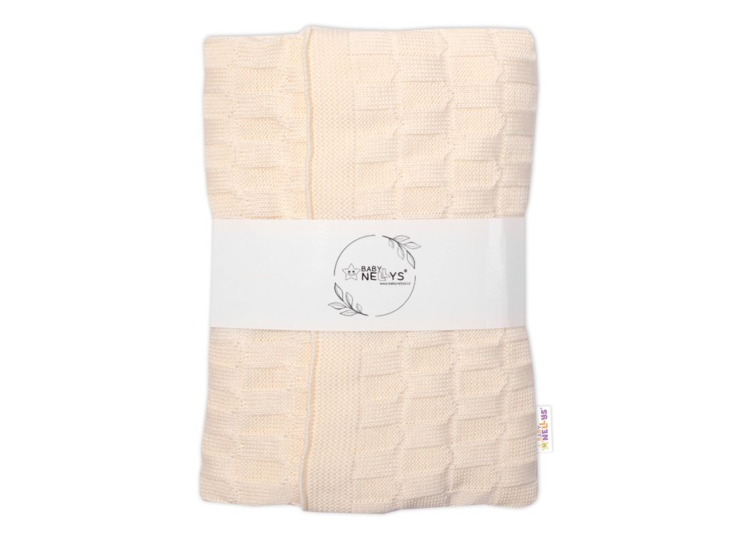 Pletená dečka Baby Nellys ®. Vhodná nejen do kočárku, ale i do autosedačky, postýlky a nebo i jako dečka na křtiny. Dečku můžete využít prakticky kdekoliv, je lehká, prodyšná. Materiál: 100 % bavlna. Rozměr: cca 80 x 100 cm.Doplňkové parametry