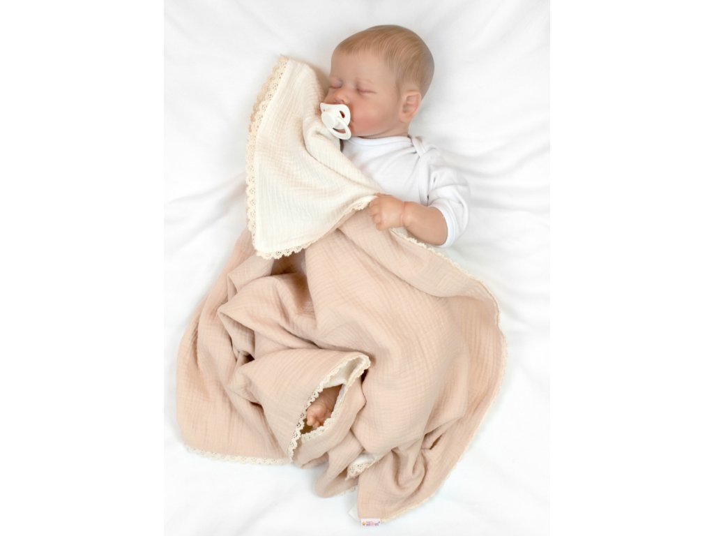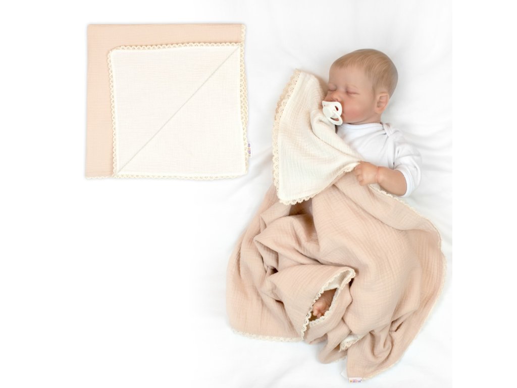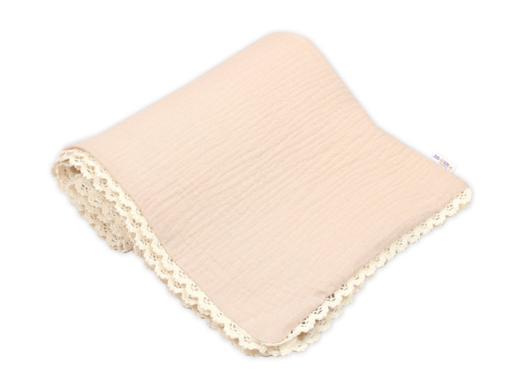 Luxusní mušelínová deka s krajkou Nature 80x80cm - béžová/smetanová