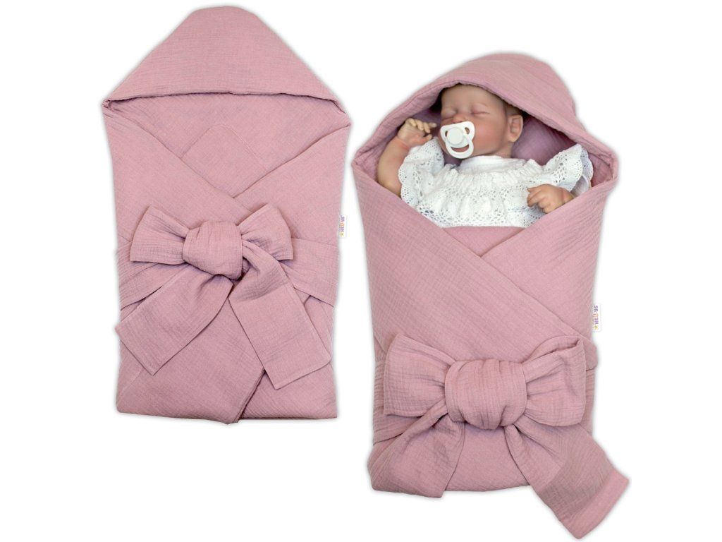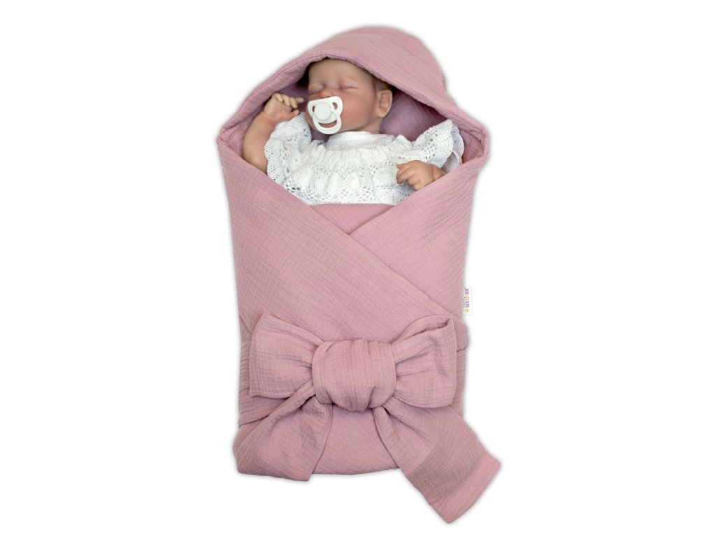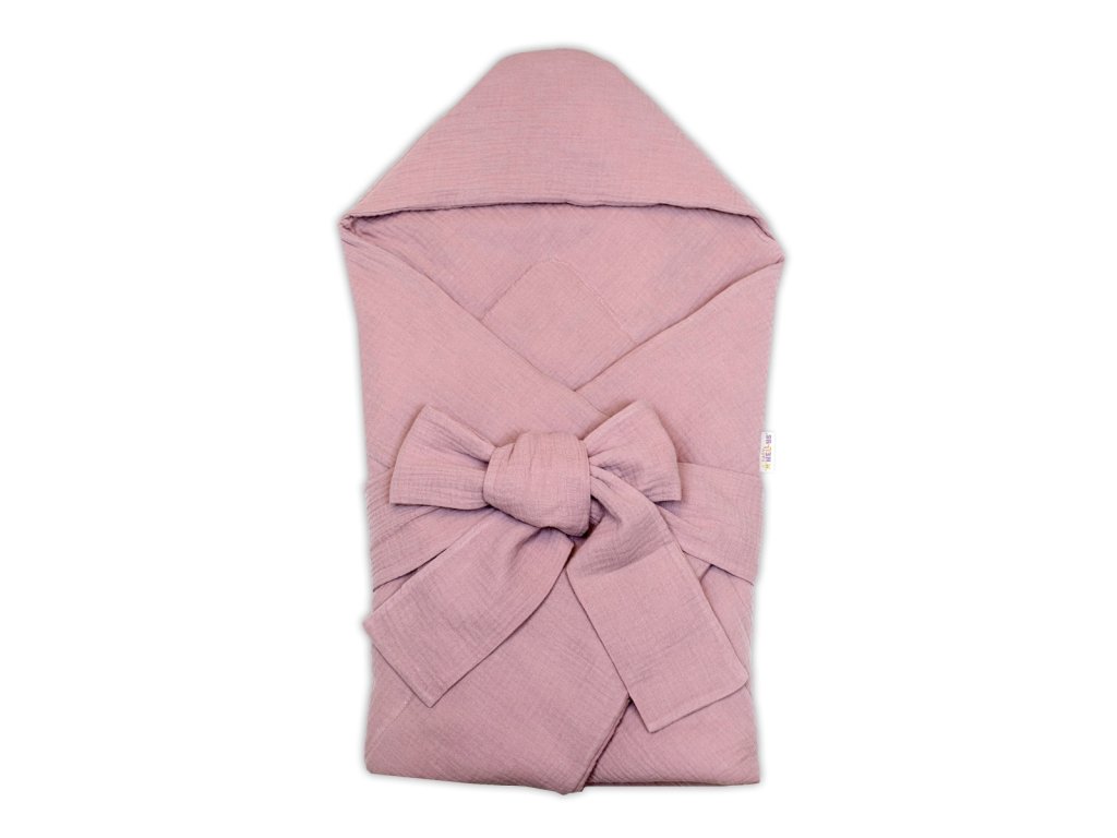 Luxusní mušelínová zavinovačka s kapucí na zavazování, pudrově růžová