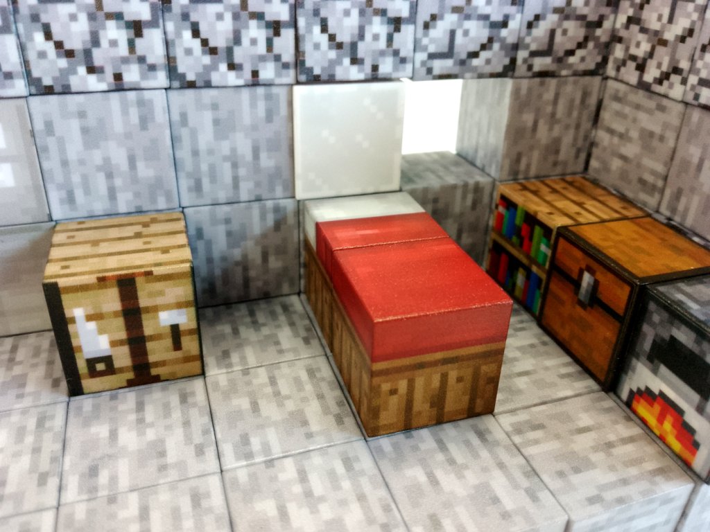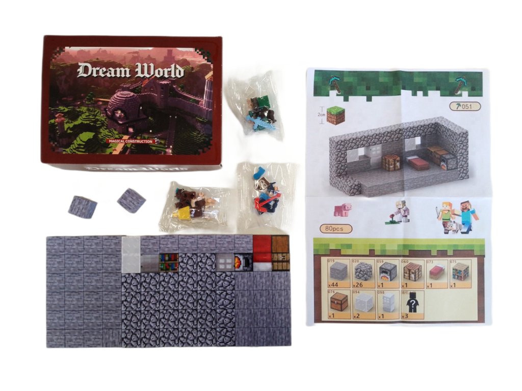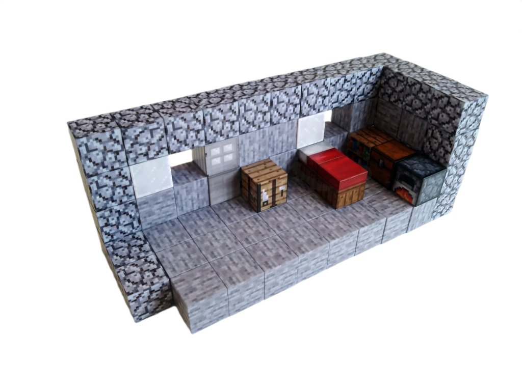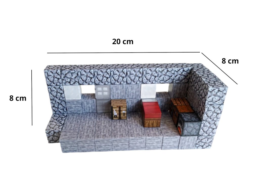 Obsahuje ikonické prvky jako pracovní stůl, postel, pec, truhlu i železné dveře – vše v typickém kostičkovaném designu. Díky přehlednému návodu je sestavení jednoduché a výsledná stavba věrně připomíná craftovací místnost známou z Minecraft světa.