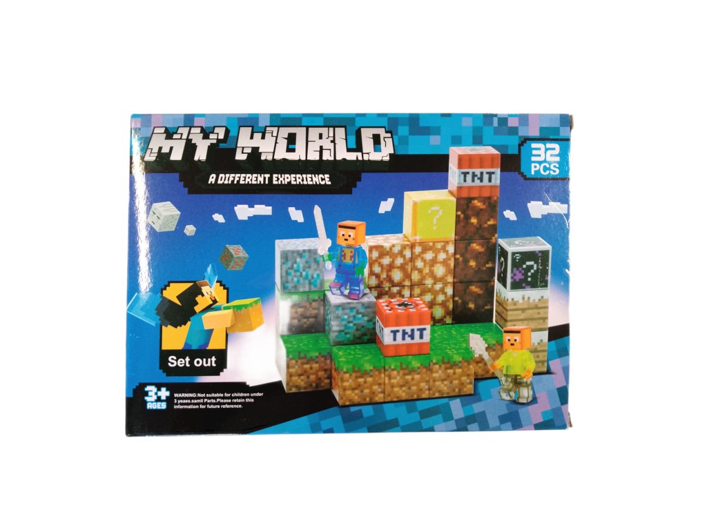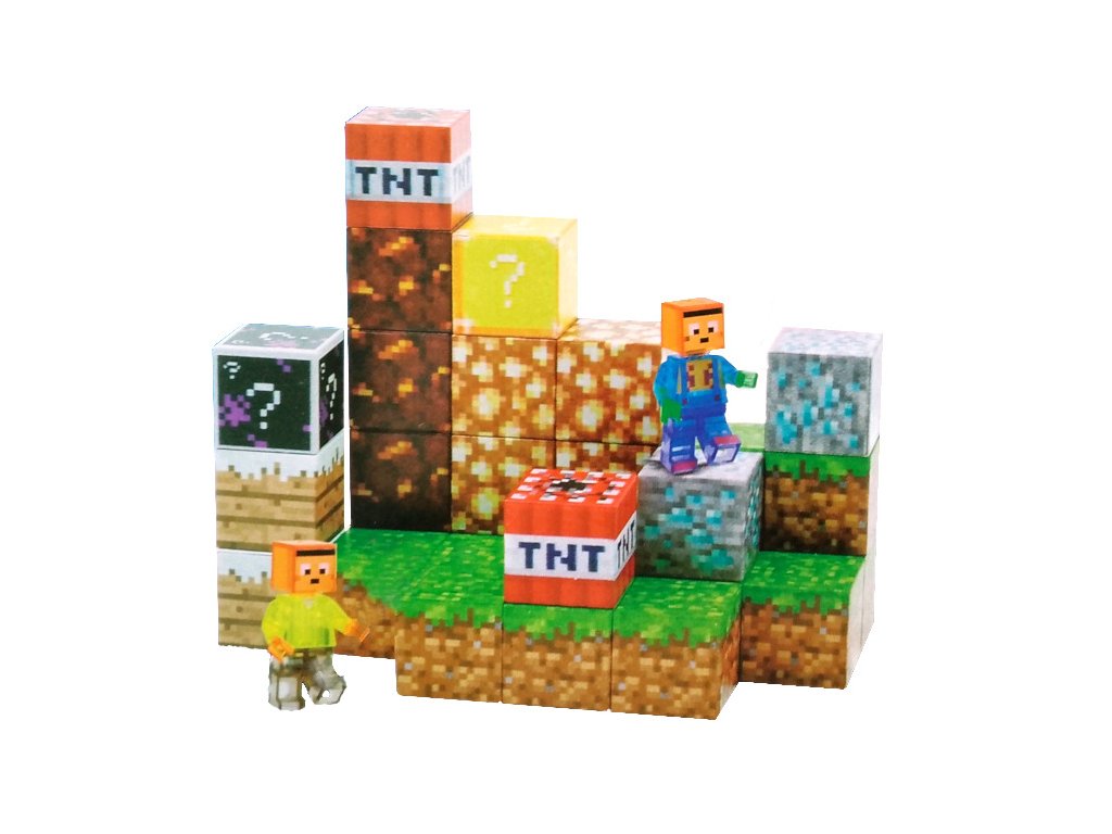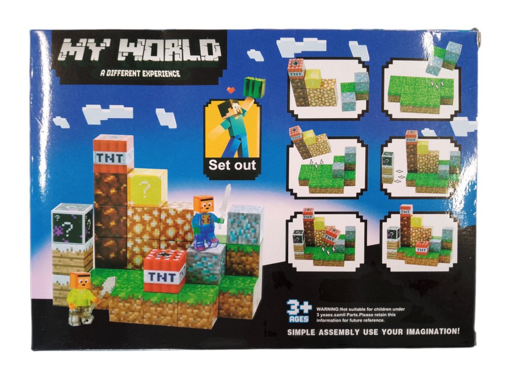 Stavebnice obsahuje 32 magnetických dílků a dvě postavičky inspirované známými herními hrdiny. Nechybí ani ikonické bloky jako TNT, glowstone, tráva, hlína nebo tajemné bloky s otazníkem. Všechny dílky mají realistický pixelový design a jsou snadno kombinovatelné – děti si tak mohou sestavit vlastní malý svět plný fantazie.