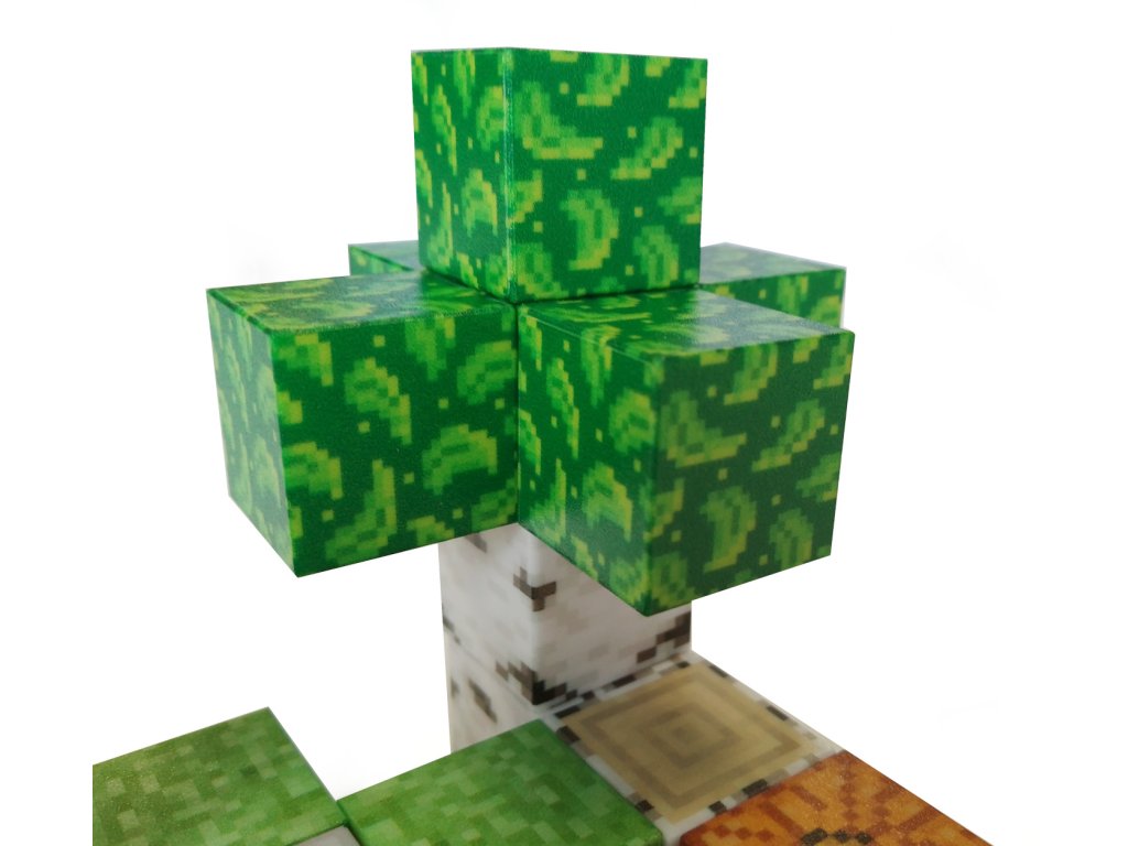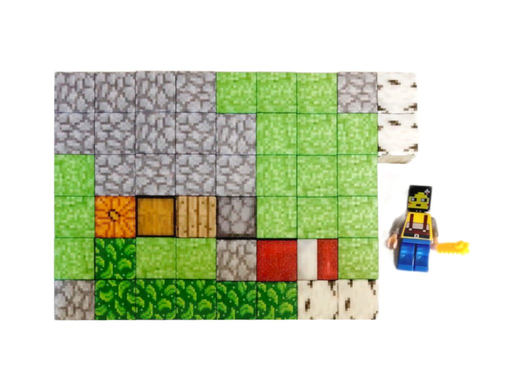 Kostky mají kvalitní potisk, který napodobuje textury z Minecraftu – trávu, kámen, dřevo nebo dýni. Materiál je bezpečný, netoxický a vhodný pro děti od 3 let. Díky magnetům je manipulace snadná i pro malé děti a zároveň podporuje jemnou motoriku a prostorovou představivost.