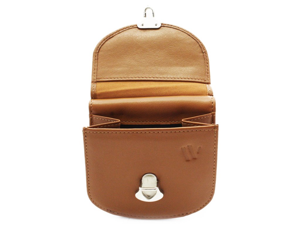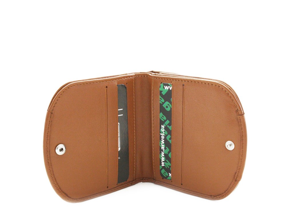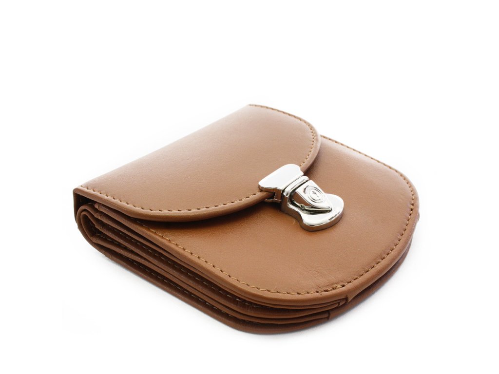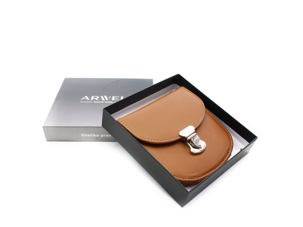 Netradiční dámská kožená peněženka má venkovní kapsu na mince jištěnou zámečkem. Součástí je přihrádka na bankovky, 6 kapes na kreditní karty a 2 otevřené kapsy.