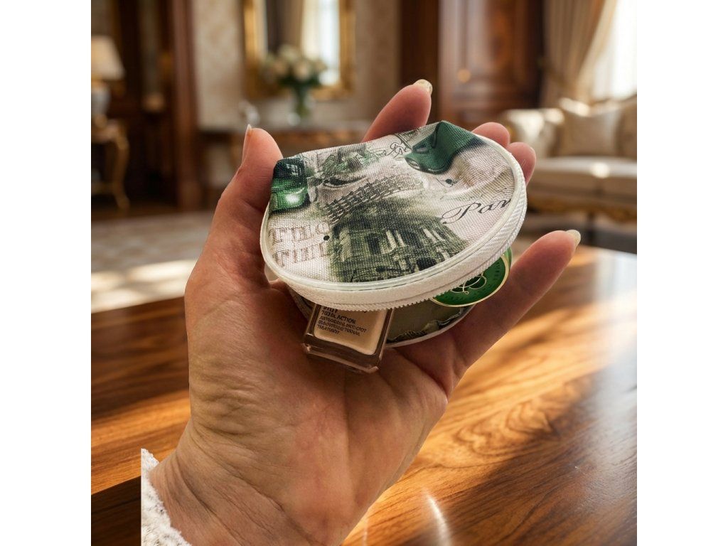 Sada dvou malých peněženek o rozměrech 8 × 9 cm, které jsou ideální pro každodenní potřeby. První peněženka ve světle zelené barvě má retro motiv Londýna s ikonickou věží Big Ben a autem. Druhá peněženka má stylový potisk "Welcome" a motivy světových měst, jako je například Paříž s Eiffelovou věží .Ideální na mince, sluchátka nebo drobnosti, které chcete mít vždy přehledně uložené. Kompaktní, praktická a designově originální