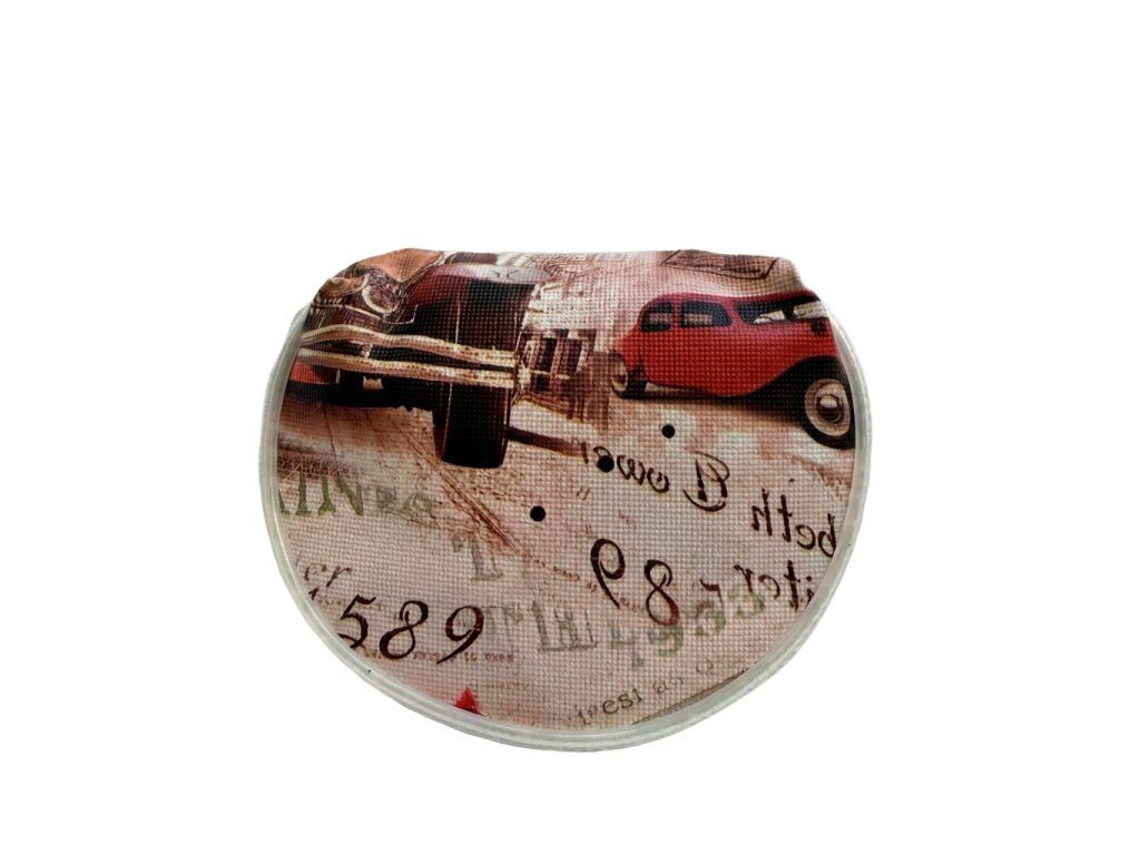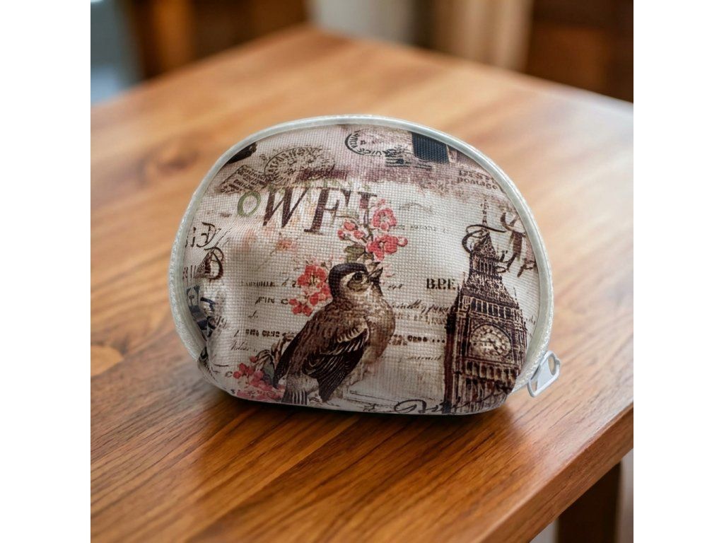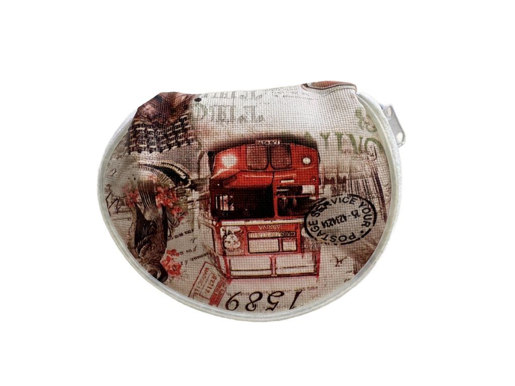 Malá praktická peněženka o rozměrech 8 × 9 cm, ideální na mince a drobné předměty. První verze zaujme originálním historickým motivem londýnského autobusu doplněným nápisy inspirovanými poštovní službou, které jí dodávají stylový retro nádech. Druhá peněženka nese decentní londýnský motiv s ptáčkem, květinami a ikonickým Big Benem, který působí elegantně a romanticky. Díky kompaktním rozměrům se snadno nosí v kabelce nebo v kapse - je to ideální doplněk pro každodenní použití.