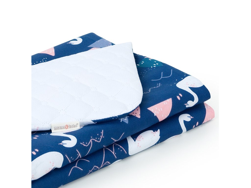 Mamo Tato Oboustranná dečka Velvet 75 x 100 cm - Labutě tm. modré/bílá