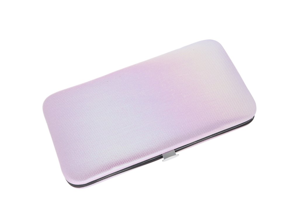 Materiál nástroje nerezová ocel. Manikúra obsahuje nůžky, 3ks kleštiček, pinzetu, odstraňovač kůžičky a pilník, manikúrní nástroje na zatlačování kůžičku/čištění nehtů, nůžky. Rozměry manikúry jsou 85 x 160mm. Obal manikúry: umělá kůže.