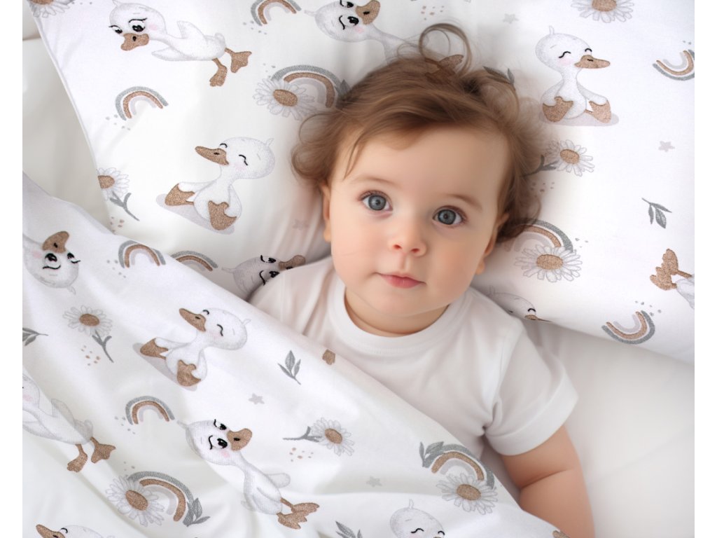 Mantinel s povlečením do postýlky, 3D sada - Kačátko, bílá/béžová