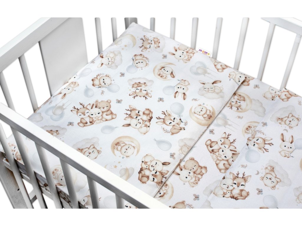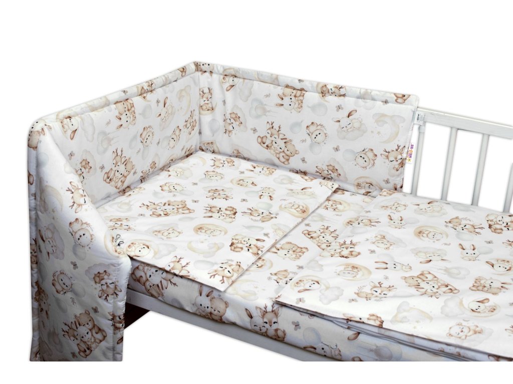 Mantinel s povlečením do postýlky, 3D sada - Sny zvířátek, bílá/hnědá